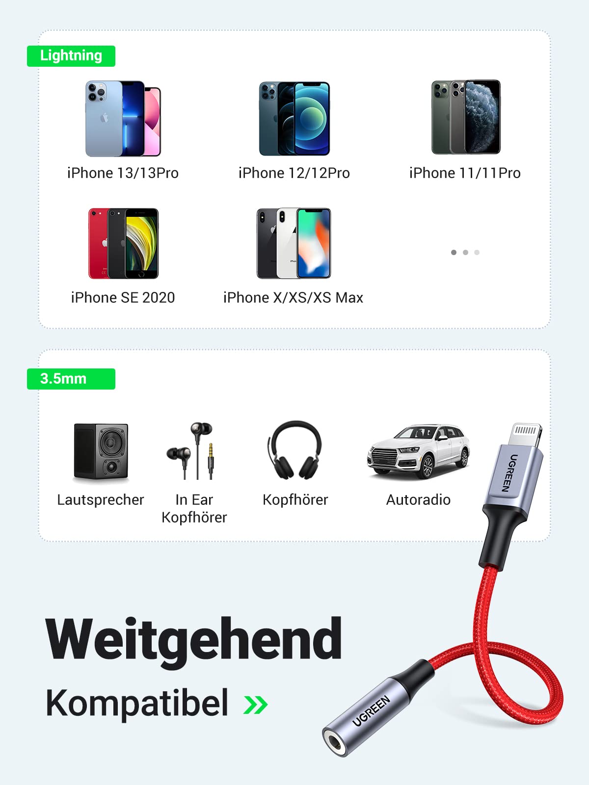 UGREEN Lightning Auf Klinke Adapter - 1m Für IPhone Kopfhörer