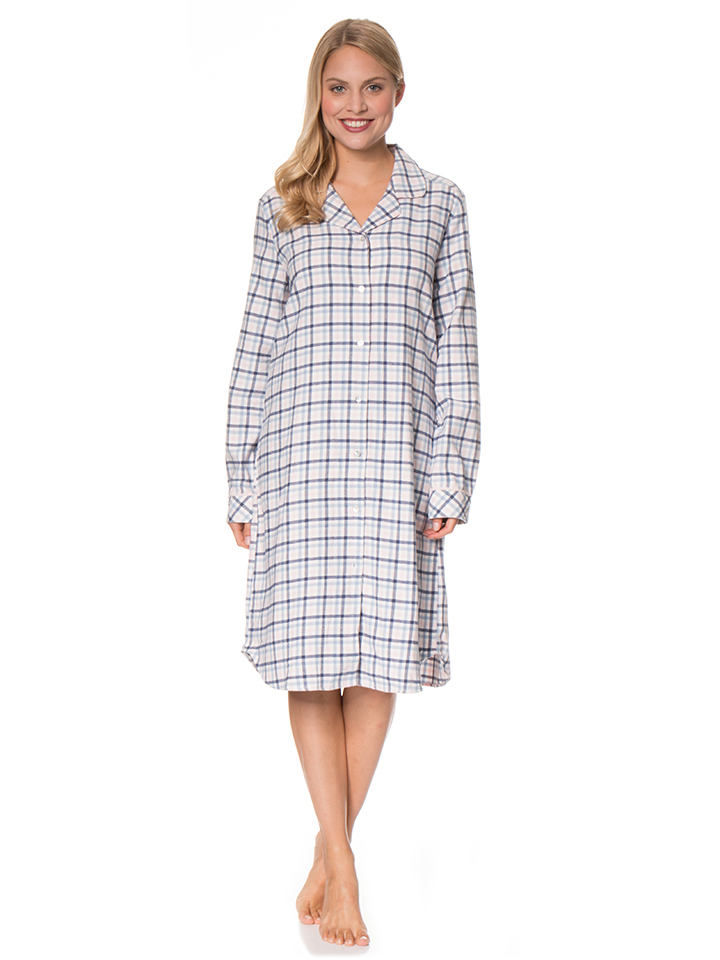 Sopesil Damen Nachthemd Mit Knöpfen Langarm - Weiches Schlafhemd Aus Baumwollmischung