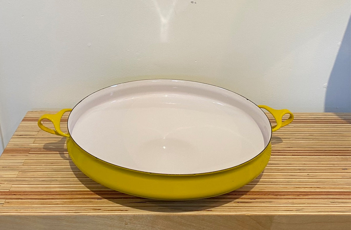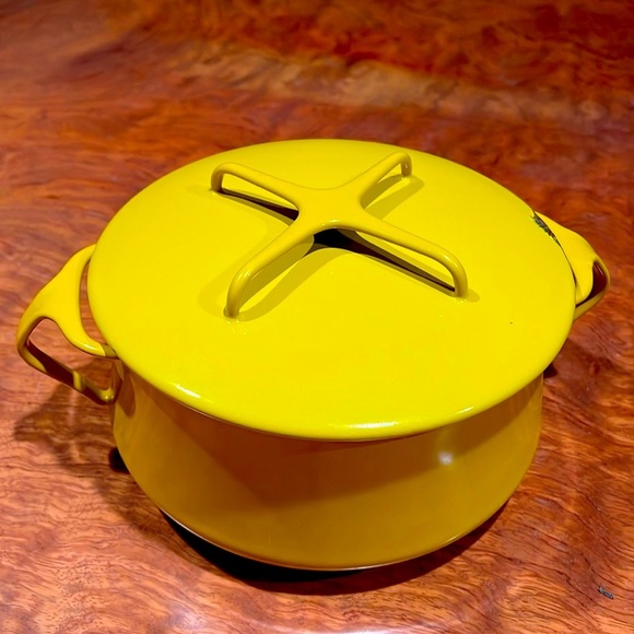 Wow, diese Dansk Kobenstyle Kasserolle ist einfach ein Traum! Der 2-Quart-Topf in knalligem Gelb bringt sofort skandinavisches Flair in deine Küche. Das Besondere: Der Deckel kann auch als Untersetzer verwendet werden - super praktisch für Buffets oder wenn du den Topf direkt auf den Tisch stellen willst. Die dreifache Emaille-Schicht sorgt für ein superglattes Finish, das sich leicht reinigen lässt. Allerdings musst du ihn von Hand spülen und die Mikrowelle ist tabu. Entworfen wurde dieses Schmuckstück schon 1956 von Jens Quistgaard, aber das Design ist heute genauso modern wie damals. Perfekt für alle, die nicht nur kochen, sondern auch stylisch servieren wollen. Ob für Eintöpfe, Soßen oder einfach nur als Deko-Objekt in der Küche - dieser Topf macht einfach was her. Ein echter Hingucker, der Qualität und Funktionalität perfekt vereint!