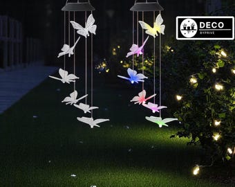 Solar Windspiel Mit Kolibri | LED Farbwechsel Garten Deko Für Terrasse & Balkon