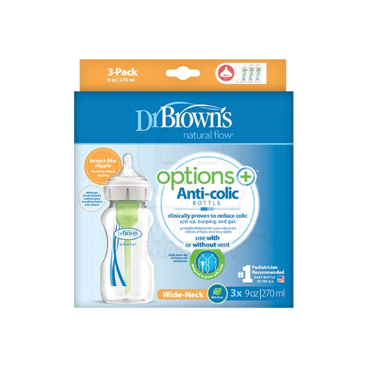 Dr. Brown's Anti-Kolik Flaschen Set - 2 Weithalsflaschen à 270ml Für Bequemer Babynährung