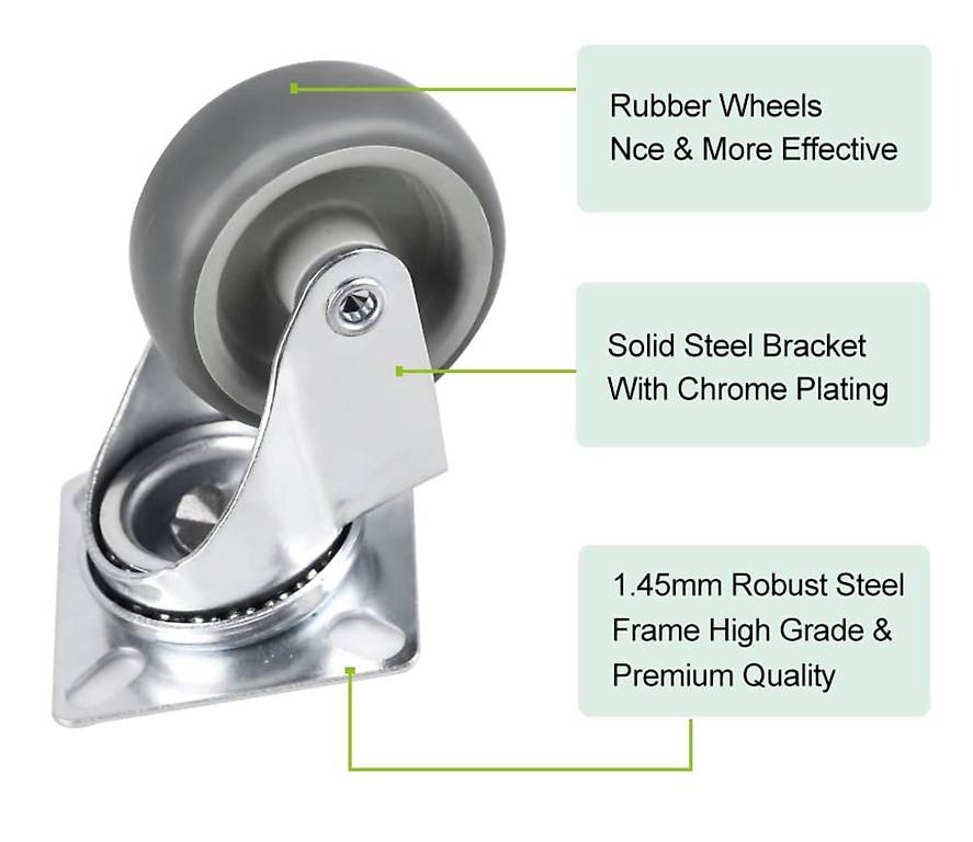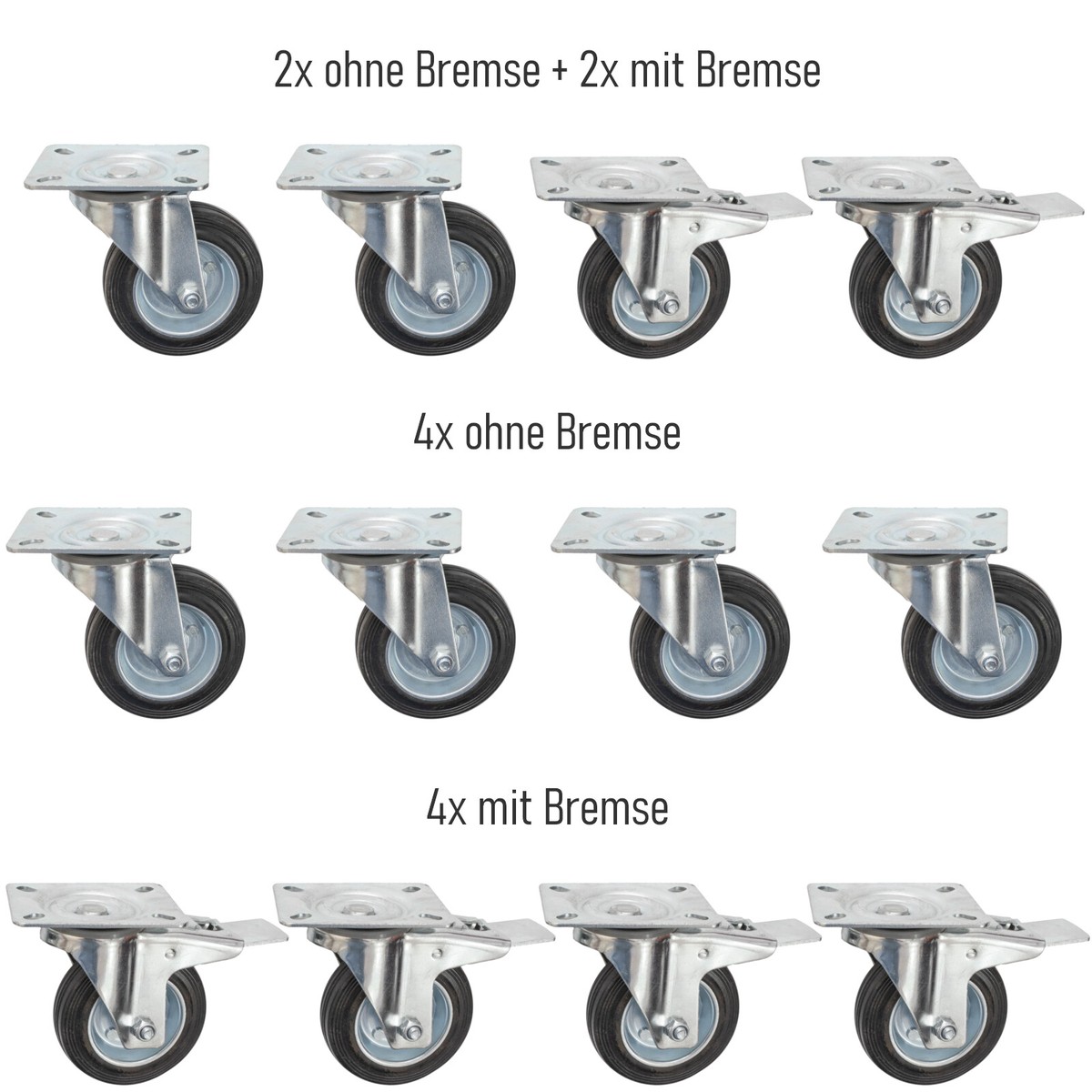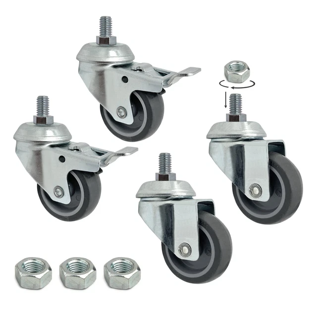 Super praktisch für alle die Möbel bewegen müssen! Dieses Set mit 4 Transportrollen in 75mm Größe macht schwere Möbel, Maschinen oder Gartenhäuschen ganz leicht beweglich. Die Rollen haben Vollgummiräder mit Stahlfelge - super bodenschonend und spurlos! Das Gehäuse ist aus verzinktem Stahl und hält auch draußen was aus. Perfekt für Werkstatt, Lager oder zu Hause. Einfach montieren und schon rollt alles viel leichter! Die doppelte Kugellagerung sorgt für smoothies Drehen. Auch für Blumenküsten oder Regale super geeignet. Damit wird Umräumen zum Kinderspiel!