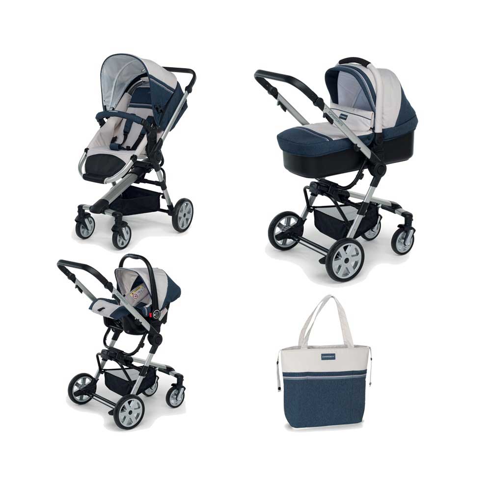 Foppapedretti Supertres Kinderwagen-Set - Kombisystem Mit Babyschale, Autositz & Tasche (bis 15 Kg)