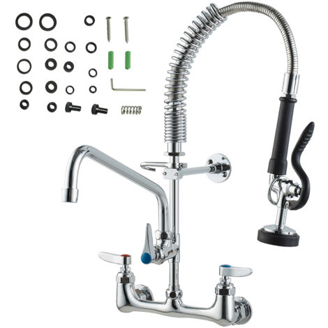 VEVOR Kommerzieller Küchenwasserhahn - Wandmontage Mit Vorspülbrause 63 Cm