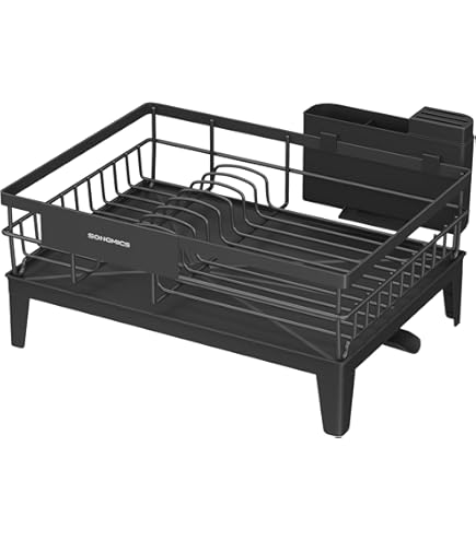 Oh man, endlich ein Abtropfgestell das nicht die ganze Arbeitsfläche vollstellt! Dieses kompakte Teil von Leadfun misst nur 41 x 17 x 10 cm und bietet trotzdem Platz für bis zu 12 Teller plus Besteck. Aus robustem Metall mit hitzebeständiger Beschichtung - das hält ewig! Die abgerundeten Ecken kratzen nicht und die mitgelieferte Kunststoff-Abfangschale ist super praktisch. Der zweigeteilte Besteckhalter sorgt für Ordnung bei Messern, Gabeln und Löffeln. Einfach aufstellen, Besteckhalter einklicken - fertig! Die Schale hat zwar keinen Ablauf, lässt sich aber easy entfernen und ausleeren. Perfekt für kleine Küchen!