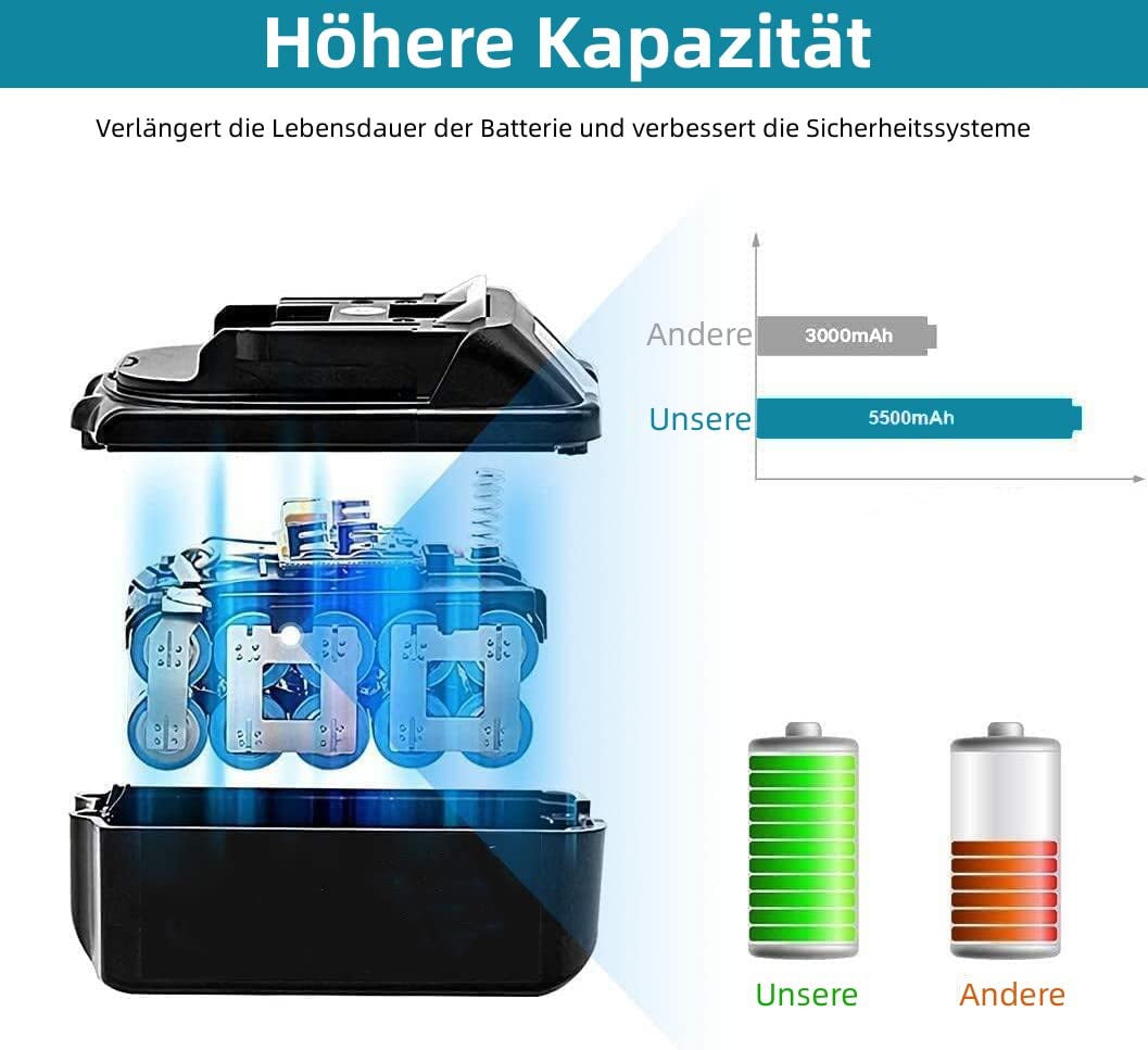 Makita Akku 18V 5Ah Kompatibel - Ersatzakku Für BL1850 BL1860B Werkzeuge