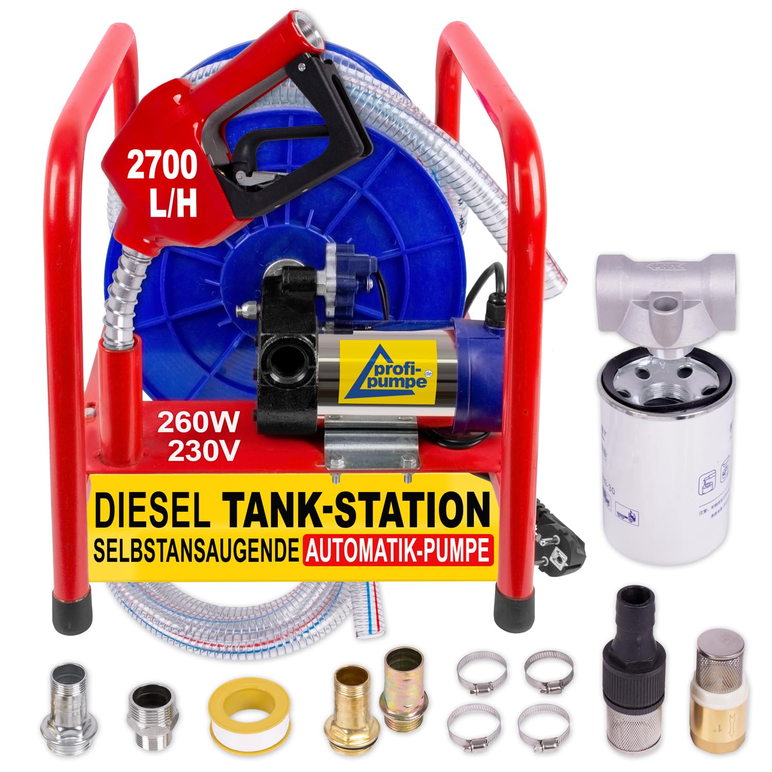 Alles dabei für deine Pumpe! Dieses komplette Zapfpistolen-Set enthält alles, was du für Diesel- oder Wasserpumpen brauchst. Die Aluminium-Zapfpistole hat eine praktische Durchfluss-Verrastung und ist langlebig. Dazu gibt's 6 Meter PVC-Schlauch mit 1 Zoll Durchmesser, den du bei Bedarf kürzen kannst. Das Rückschlagventil aus Messing verhindert Rückfluss, und die 2 Messing-Tüllen plus Stahl-Schlauchschellen sorgen für sicheren Sitz. Perfekt für Heizölpumpen, Kraftstoffpumpen, Tauchpumpen oder Brunnenpumpen. Einfach zusammenschrauben und schon kannst du lossprudeln. Alles in bester Qualität - da macht das Pumpen gleich doppelt Spaß. Ob im Garten, in der Werkstatt oder auf dem Bauernhof - mit diesem Set bist du bestens ausgerüstet!