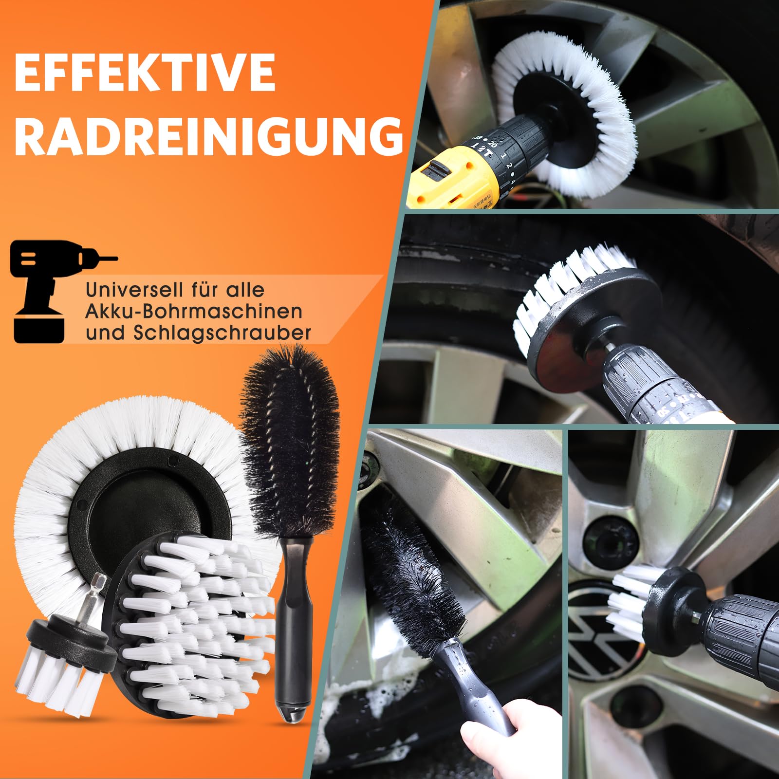 Willst du dein Auto wieder strahlen lassen? Dieses 36-teilige Profi-Set hat alles, was du für perfekte Auto-Pflege brauchst! In der praktischen Leinwand-Tasche (42x16x12 cm) findest du Bürsten für jeden Zweck: Bohrbürsten-Set für hartnäckigen Schmutz, Detailbürsten für schwer erreichbare Ecken, Reifenbürsten für makellose Felgen. Die Mikrofaser-Handtücher (30x30 cm) sind super saugstark und kratzfrei - perfekt für Lack und Scheiben. Mit den verschiedenen Schwämmen und Polierpads bringst du jeden Lack zum Glänzen. Die T-förmige Reifenbürste erreicht auch die hintersten Felgenbereiche, und die Lüftungsschlitz-Bürsten machen Schluss mit Staub in den Ritzen. Besonders praktisch: Die Bürsten für elektrische Bohrmaschinen erleichtern die Arbeit an stark verschmutzten Stellen. Alles in einer Tasche - ideal für Garage, Waschstraße oder unterwegs. Nicht nur für Autos super, sondern auch für Motorräder, Fahrräder oder Haushaltsreinigung. Die hochwertigen Polypropylen-Borsten schonen Oberflächen, reinigen aber gründlich. Einmal investieren, jahrelang Freude an einem sauberen Auto haben! Komplett-Set mit: 3-teiligem Bohrbürsten-Set, 2 Lüftungsschlitz-Bürsten, 2 Mikrofaser-Handtücher, Reifenbürste, Wachs-Applikator, Waschhandschuhen, 5-teiliger Detailbürsten-Set, Glasreinigungsset, Spritzflasche, verschiedenen Schwämmen und Pads - alles was das Auto-Pflege-Herz begehrt!