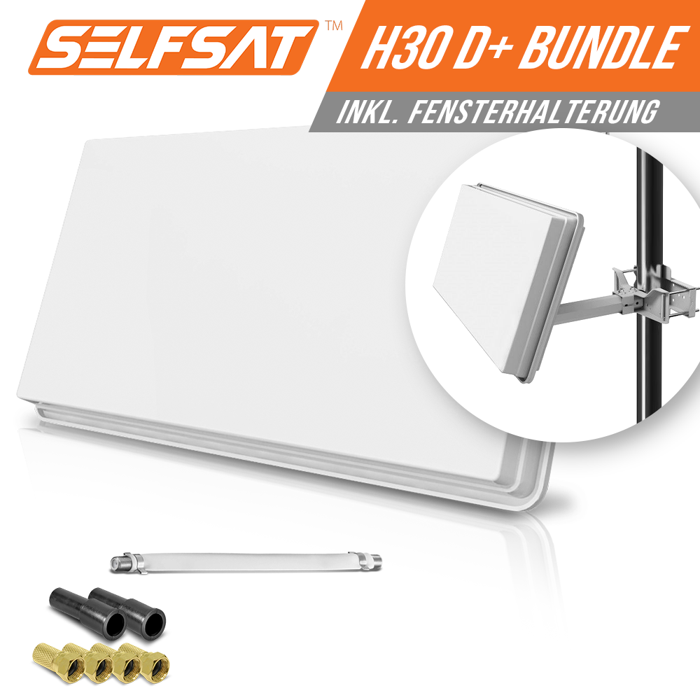 Satellitenfernsehen fast unsichtbar! Diese flache Selfsat Antenne ist nur 58mm dick und trotzdem extrem leistungsstark. Perfekt für Orte, wo normale Schüsseln verboten sind - oder für Camper und Wohnmobilfahrer. Empfängt Astra, Hotbird, Sirius und Eutelsat in bester Full HD und 4K UHD Qualität. Im Lieferumfang ist alles dabei: Antenne, 10m Kabel, Fensterdurchführung, Halterungen und Montagematerial. Einfache Installation mit verschiedenen Montagemöglichkeiten (Wand, Mast, Fenster, Standfuß). Mit 33 dbi Empfangsleistung und Betrieb von -30°C bis +60°C für zuverlässigen Empfang bei jedem Wetter. Ideal für Mietwohnungen oder den mobilen Einsatz!