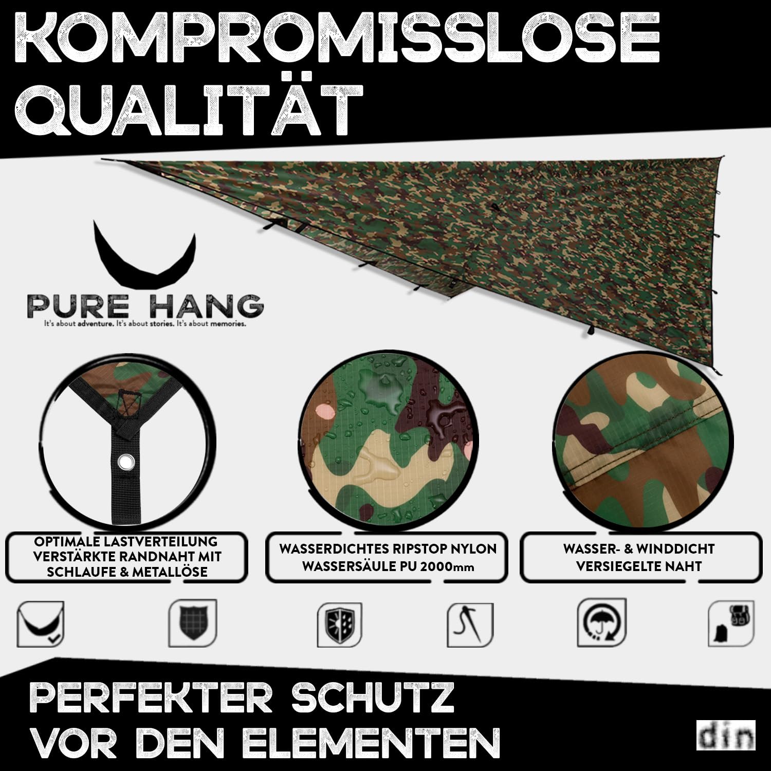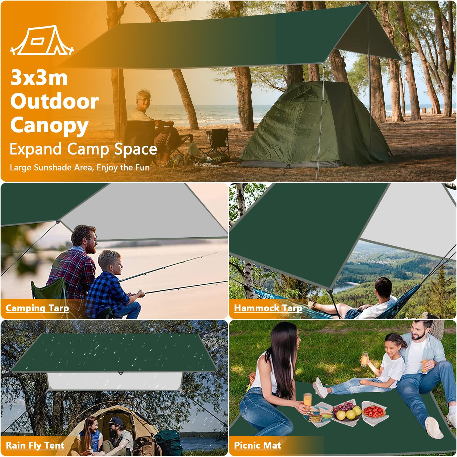 Frasheng Zeltplane 3x3m Wasserdicht - Komplettset Für Camping & Hängematte