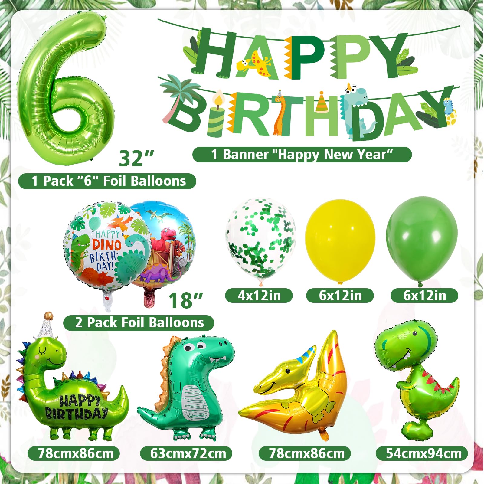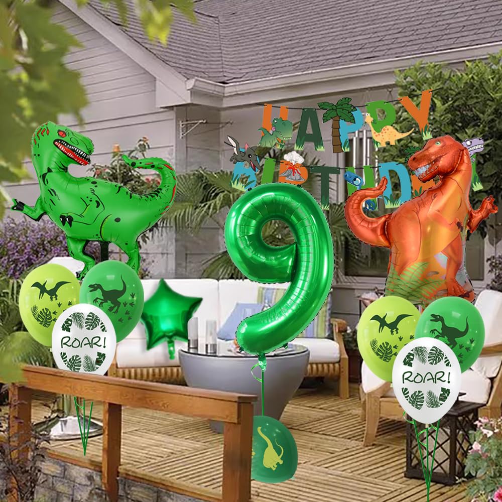Achtung, die Dinos kommen! Mit diesem mega-coolen 118-teiligen Deko-Set verwandelst du jede Party in eine aufregende Jurassic-World. Enthalten sind 6 realistische Dinosaurier-Ballons (inklusive T-Rex und Triceratops), eine Kokospalme und jede Menge weitere Ballons in Grün- und Dschungeltönen. Alles aus natürlichem Latex und Aluminiumfolie - geruchsneutral und absolut unbedenklich für Kinder. Mit den mitgelieferten Ballondekorationsstreifen kannst du easy Ballonbögen und Girlanden basteln. Die Klebepunkte und Bänder helfen dir, alles schnell an Wänden und Tischen zu befestigen. Sogar Dino-Fußabdruck-Aufkleber sind dabei - damit kannst du schon am Eingang eine spannende Abenteuer-Reise starten lassen! Perfekt für Kindergeburtstage, Kindergartenfeiern oder einfach als coole Deko fürs Kinderzimmer. In nur kurzer Zeit zauberst du eine komplette Dino-Welt - und hast dann mehr Zeit, um die Party zu genießen. Deine kleinen Gäste werden aus dem Staunen nicht mehr herauskommen!