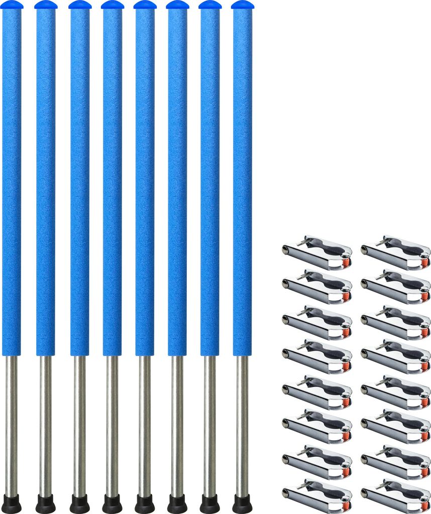 Dein Trampolin-Netz hängt durch oder die Stangen sind verrostet? Mit diesem Komplettset machst du dein Trampolin wieder sicher und stabil! Die 233cm langen Ersatzstangen sind aus robustem, verzinktem Stahl und halten auch bei schlechtem Wetter problemlos stand.\\n\\nIm Set ist alles enthalten was du brauchst: 8 verzinkte Metallstangen, dick gepolsterte Schaumstoffrohre, stabile Klammern, Gummifüße und Endkappen. Kein extra Einkaufen nötig - einfach auspacken und montieren! Die extra dicke Polsterung schützt deine Kinder vor Verletzungen, falls sie mal gegen die Stangen stoßen sollten.\\n\\nDie Montage ist super einfach und erfordert kein technisches Know-how. Meist reichen wenige Handgriffe und dein Trampolin ist wieder einsatzbereit. Die Stangen passen für die meisten gängigen Trampolin-Modelle mit Sicherheitsnetz.\\n\\nWarum dieses Set?\\n• Komplettset - keine zusätzlichen Teile nötig\\n• Verzinkter Stahl - rostfrei und langlebig\\n• Dicke Polsterung - maximale Sicherheit\\n• Einfache Montage - in Minuten erledigt\\n• Universal passend - für viele Trampolin-Marken\\n\\nPerfekt wenn:\\n• Alte Stangen verrostet oder verbogen sind\\n• Das Netz nicht mehr richtig gespannt ist\\n• Du die Sicherheit erhöhen willst\\n• Das Trampolin einen Frühjahrs-Check braucht\\n• Du Geld für ein neues Trampolin sparen willst\\n\\nTechnische Details:\\n• Länge: 233cm\\n• Material: Verzinkter Stahl\\n• Inhalt: 8 Stangen + komplettes Zubehör\\n• Wetterfest für ganzjährigen Einsatz\\n• Stabile Konstruktion\\n\\nMach dein Trampolin wieder sicher und hol dir den Sprungspaß zurück - ohne teure Neuanschaffung!