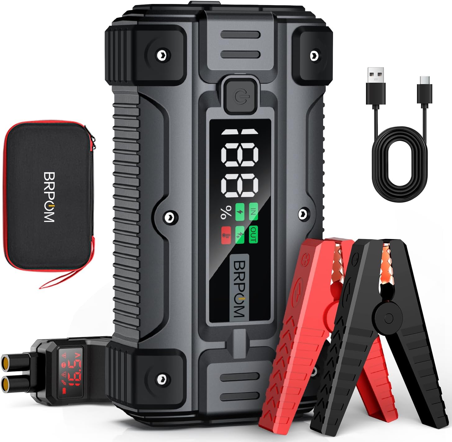 Das Besondere: Integrierter Luftkompressor mit 160PSI! Könnt damit ganz einfach Reifen aufpumpen - mit 45L/Min ist der Turbo schnell. Der große 2,5-Zoll-Bildschirm zeigt alle Daten an.