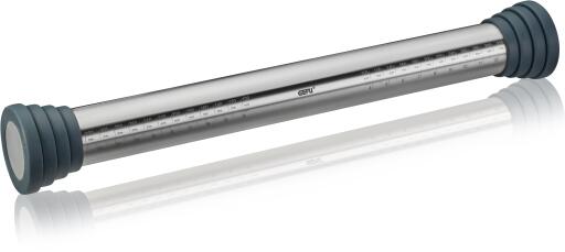 Backen war noch nie so einfach! Mit diesem cleveren GEFU Teigroller rollst du jeden Teig perfekt aus - ob für Pizza, Plätzchen oder Kuchen. Das konische Design ist der absolute Game-Changer: Es passt sich sowohl runden Springformen als auch rechteckigen Backblechen ideal an. Kein lästiges Hin-und-Her-Rollen mehr!\n\nDie integrierte Fingermulde gibt dir super Halt und Kontrolle, selbst bei klebrigen Teigen. Und das Beste: Egal ob Links- oder Rechtshänder - der ergonomische Griff liegt einfach perfekt in der Hand. Aus hochwertigem Edelstahl und Kunststoff gefertigt, ist der Roller robust und langlebig.\n\nNach dem Backen einfach abwaschen (Achtung: nicht spülmaschinengeeignet!) und an der praktischen Aufhängeöse verstauen. So hast du deinen Küchenhelfer immer griffbereit. Für alle Hobbybäcker, die Wert auf Qualität und cleveres Design legen - dieser Teigroller wird dein neuer Liebling in der Küche!