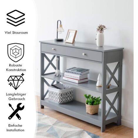 COSTWAY Konsolentisch Mit Schublade - Stylischer Flurtisch Aus Holz