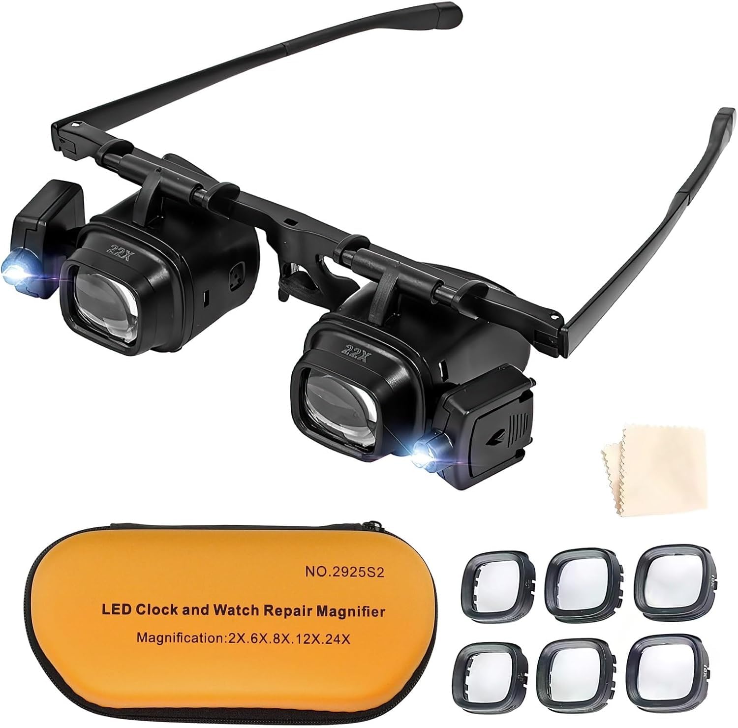 Kopflupe Mit LED Licht - 2X Bis 24X Vergrößerung Für Brillenträger | Lupenbrille Für Handwerk & Reparaturen