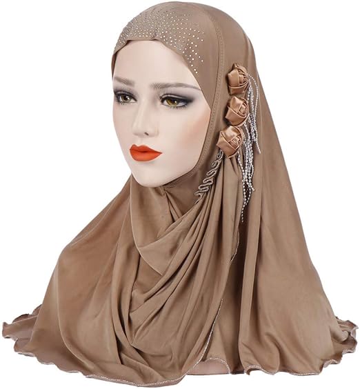 YJZQ Muslim Kopftuch 2-tlg. - Weicher Turban Aus Baumwolle Mit Strassstein