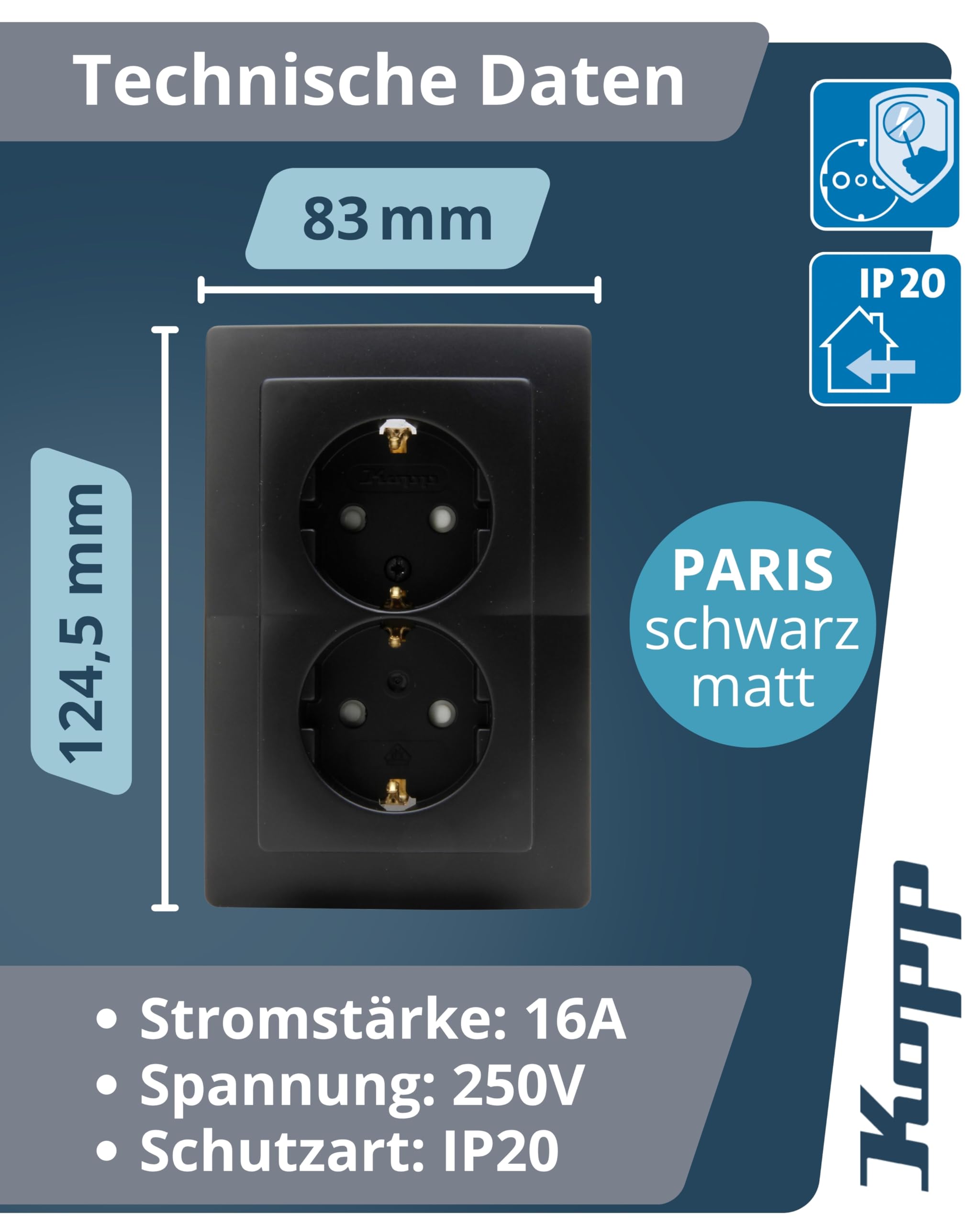 Kopp PRCD-2P Steckdosen - 20er Pack FI-Schutzschalter IP55 16A