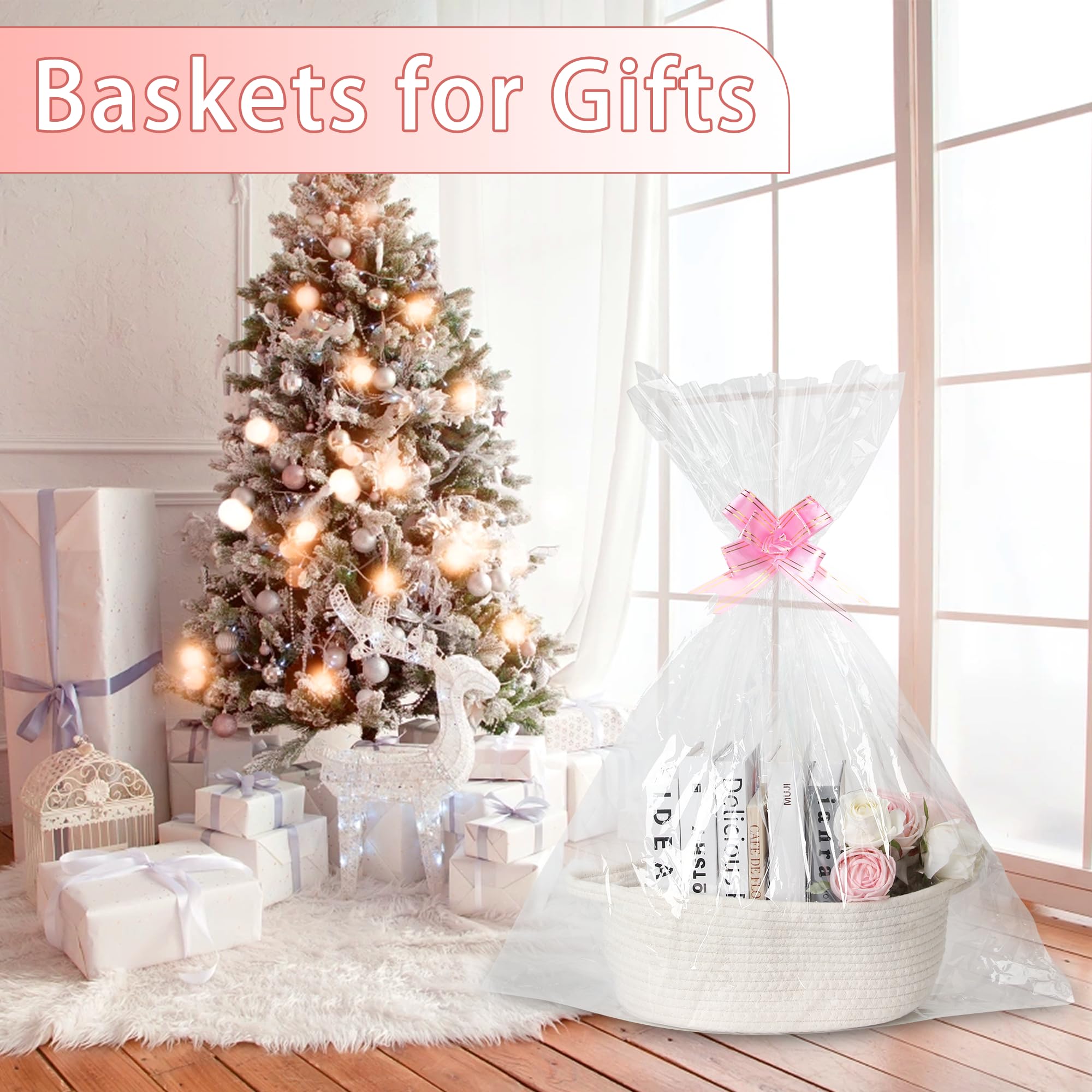 Bigepige Geschenkkorb Aus Baumwolle - Geflochtener Korb Mit Folie & Schleife In Rosa