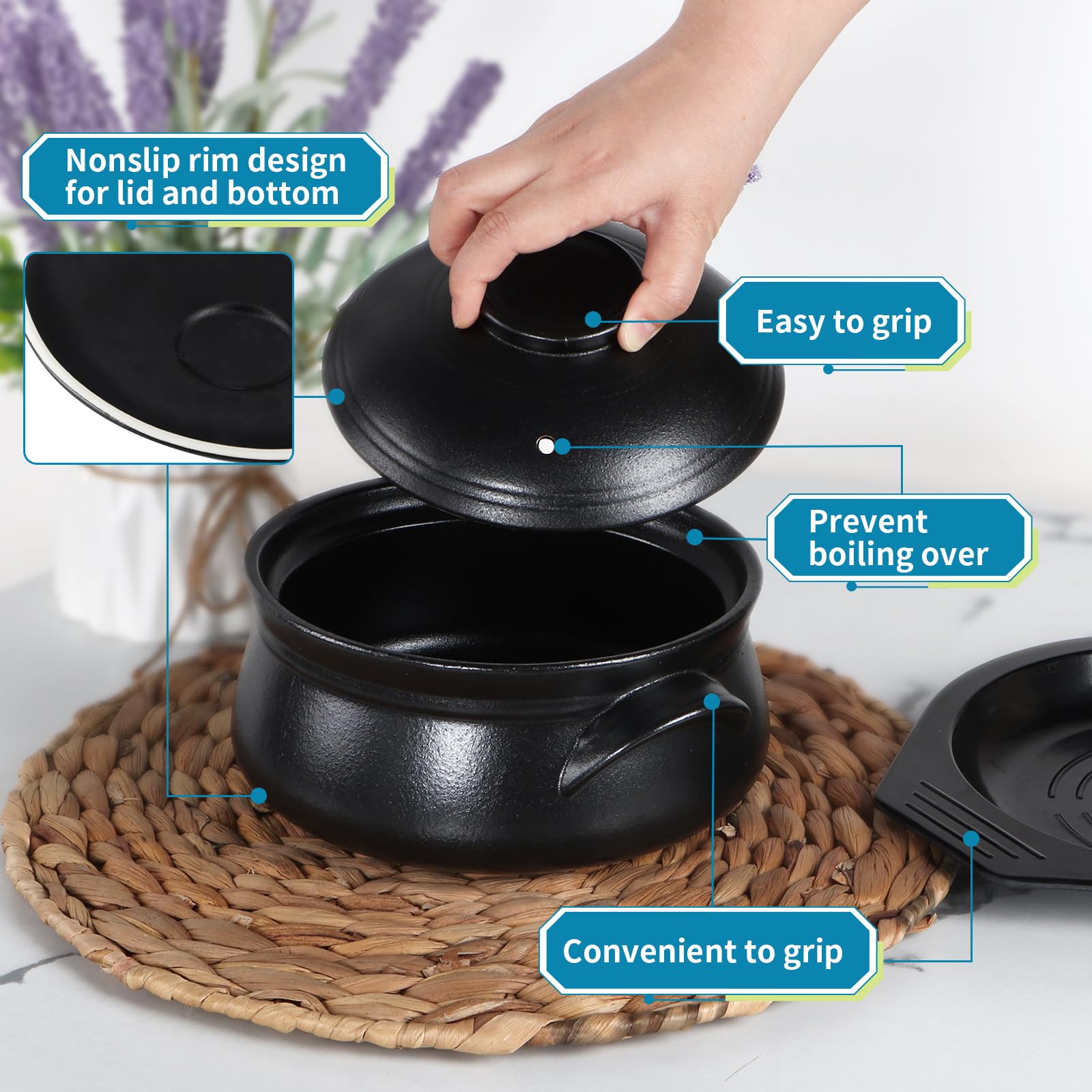 Koreanische Bibimbap-Schale 1,6L - Keramik Kochtopf Mit Deckel Mattschwarz