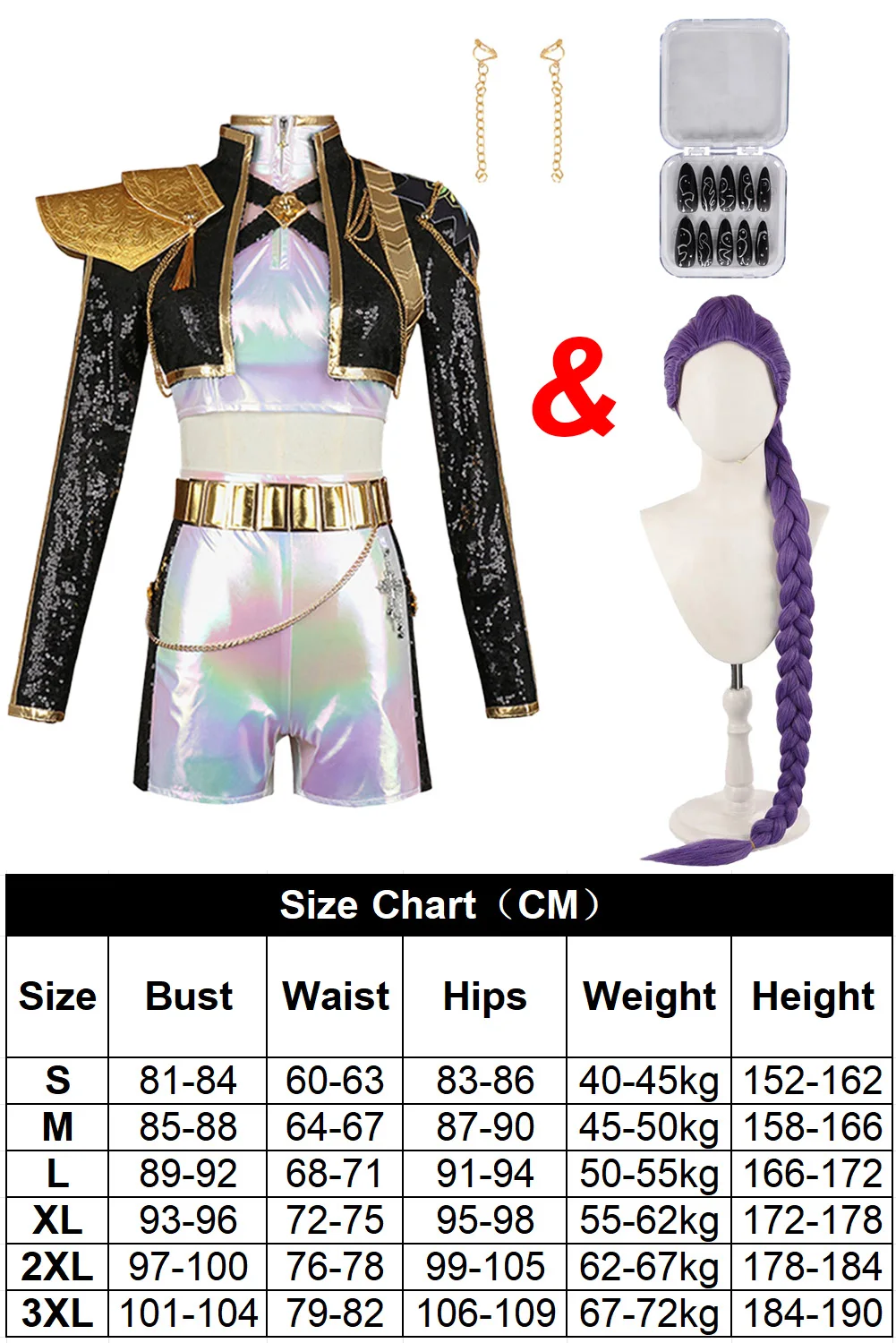 Als Kpop-Idol Rumi glänzen? Mit diesem authentischen Dämonenjagd-Kostüm kein Problem! Das Set includes: coole weiße Weste, schwarzer bedruckter Kurzmantel und passende Shorts. Aus hochwertigem, weichem Stoff mit super Druckqualität. Inspiriert von Rumis legendären Bühnenauftritten - jedes Detail sitzt! Perfekt für Cosplay-Events, Halloween oder Themenpartys. In Größen von XS bis 3XL. Tipp: Bei Zwischengrößen lieber eine Nummer größer nehmen für mehr Bewegungsfreiheit. Sie wirst alle Blicke auf dich ziehen!