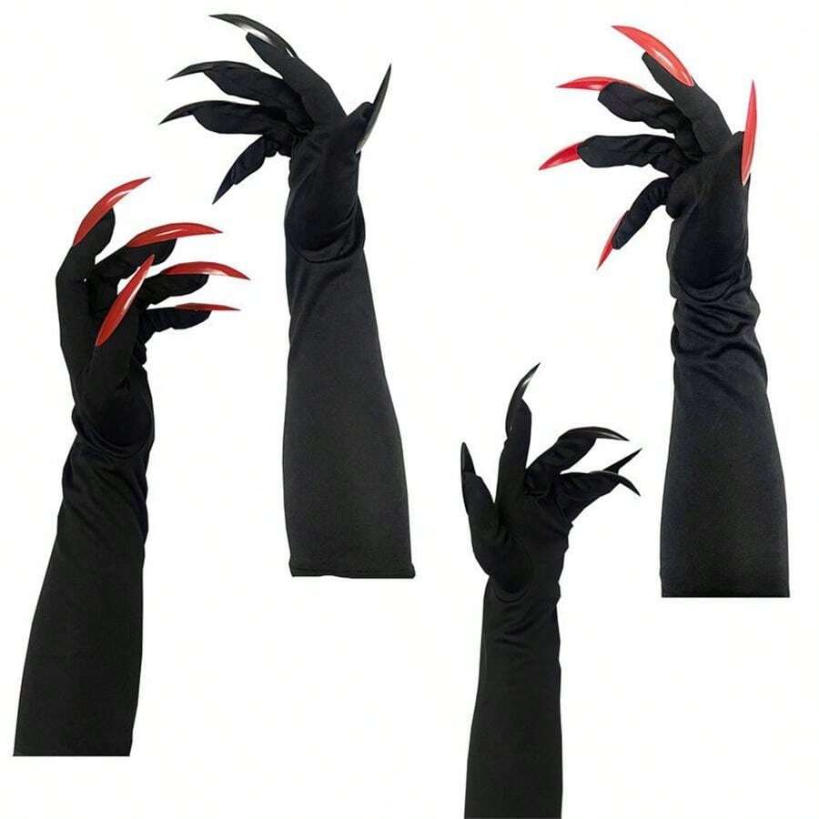 Kostüm-Handschuhe Mit Langen Krallen - Halloween & Cosplay Accessoire In Schwarz, Rot, Silber
