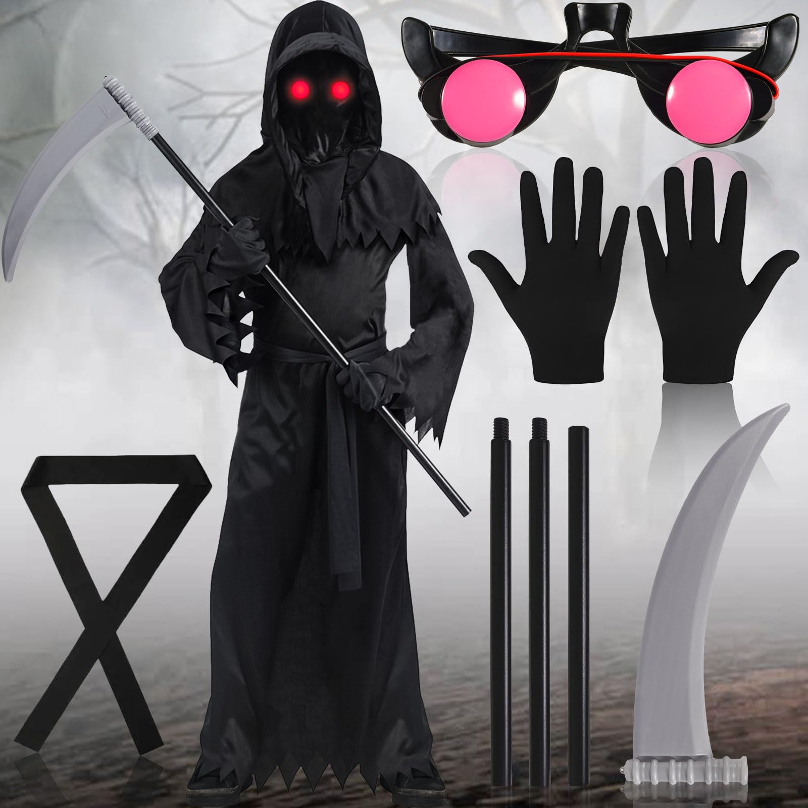 Tccydm Sensenmann Kostüm Kinder - Halloween Set Mit Sense & Accessoires
