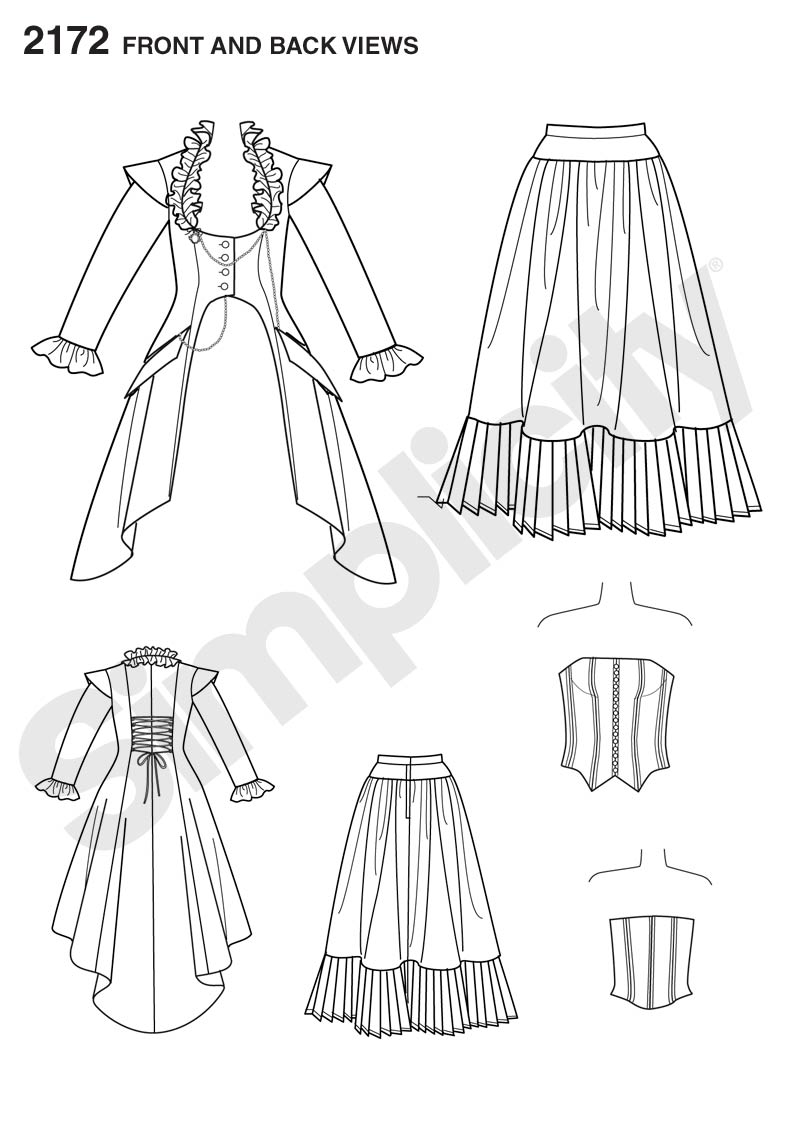 Simplicity Schnittmuster 2172 - Viktorianisches Kostüm Mit Mantel, Rock Und Bustier