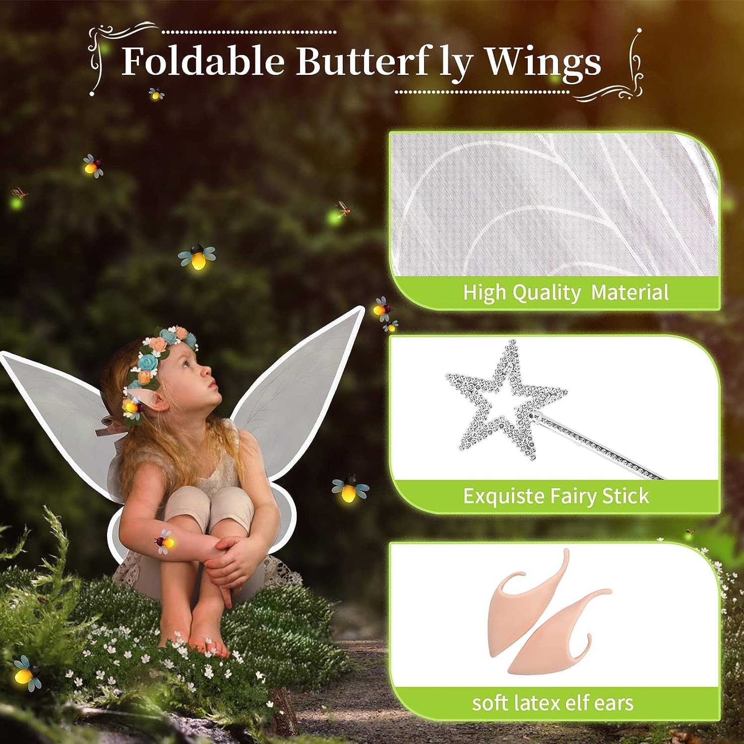 KutaKuta Fee Kostüm Set - Schmetterlingsflügel Mit Elfenohren & Zauberstab Für Kinder