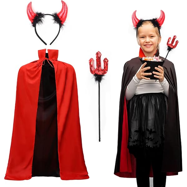 Halloween Teufel Kostüm Set - Umhang Mit Hörnern & Dreizack