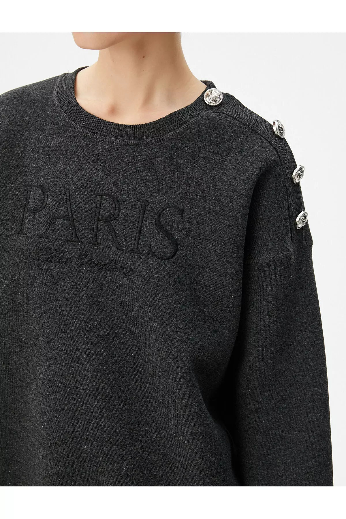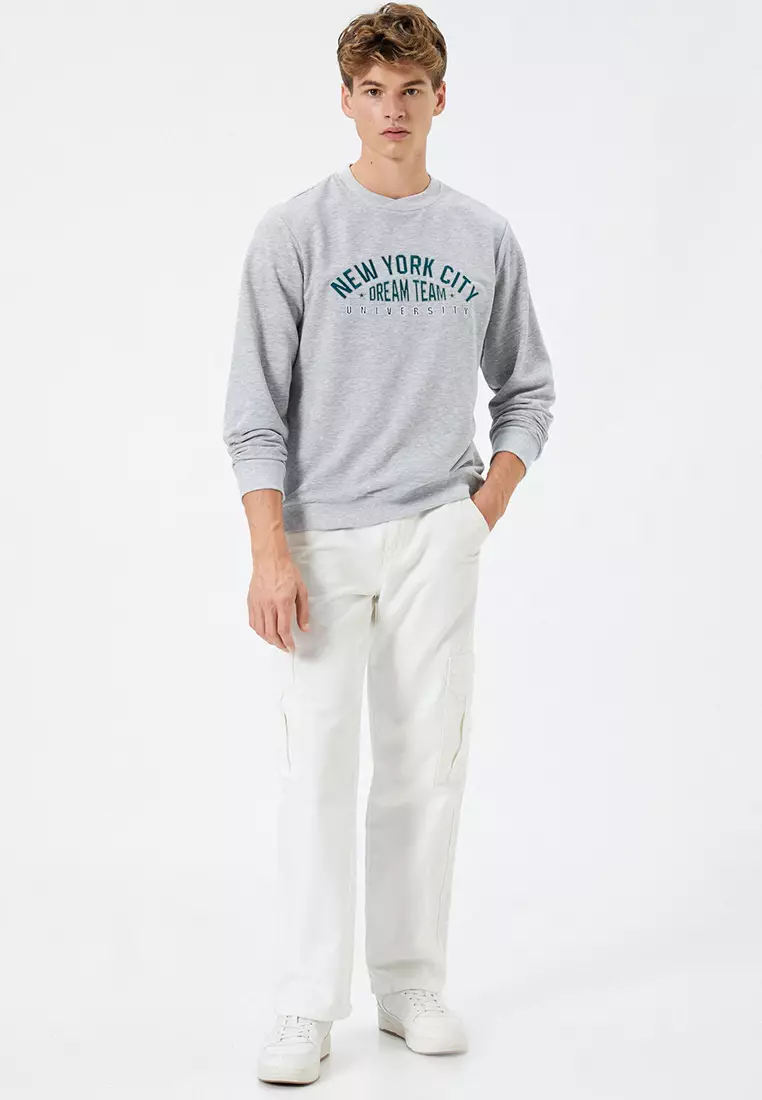 Koton Baby Sweater Mit Buchstaben-Stickerei - Grauer Strickpulli 6/9 Monate