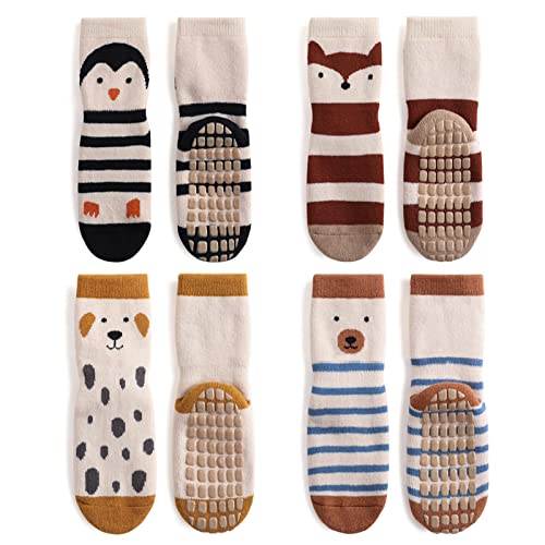 TECKI Baby Krabbelsocken Set - 3 Paar Socken + 3 Paar Knieschoner Mit Tiermuster