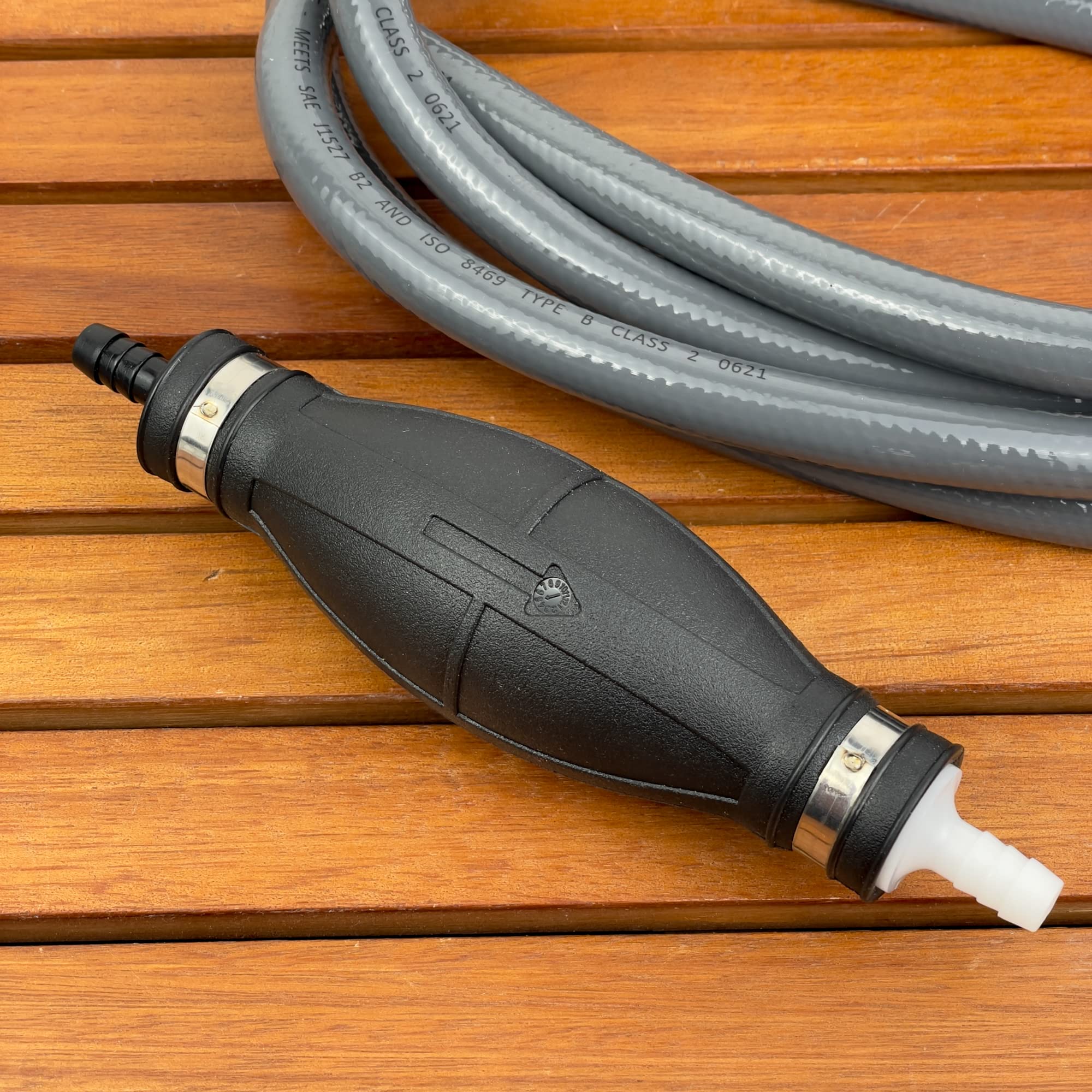 Kraftstoff umfüllen war noch nie so einfach! Dieser GATE14 Pumpball aus PVC pumpt Benzin, Diesel oder Heizöl ohne Strom. Einfach Schlauch (10 mm Innendurchmesser) anschließen und die Gummikugel drücken. Mit Farbcodierung für Flussrichtung, doppelten Schlauchschellen für dichte Verbindung. 125 mm lang, für Rasenmäher, Boote oder Maschinen. Achtung: Auffangbehälter tiefer platzieren als Quelle. Einfach, sicher und praktisch!