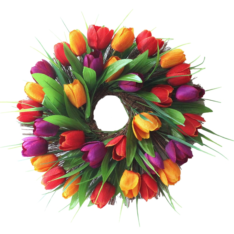 KEKEMEOW Tulpen Kranz Mit Willkommensschild - 15 Zoll Frühlingskranz Für Haustür | Bauernhaus Deko