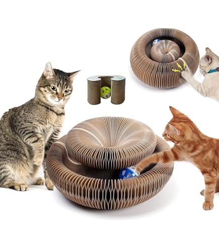 Der absolute Hit für deine Samtpfote! Dieser Kratzkokon ist Spielzeug, Kratzbaum und Bett in einem - und lässt sich ganz einfach zusammenfalten. \\n\\n✅ Maße: 24x24x11 cm (ausgeklappt) \\n✅ Material: Umweltfreundlicher Recyclingkarton \\n✅ Features: Integrierte Ballbahn, magnetisches Design \\n✅ 4-in-1: Bett, Kratzbrett, Spielzeug & Entspannung \\n\\nDeine Katze kann kratzen, spielen, jagen und sich ausruhen - alles mit einem Produkt! Schützt deine Möbel vor Krallen und bietet stundenlangen Spielspaß. \\n\\nEinfach aufklappen und schon geht der Spaß los. Perfekt für Wohnungskatzen oder als zusätzliches Spielzeug!