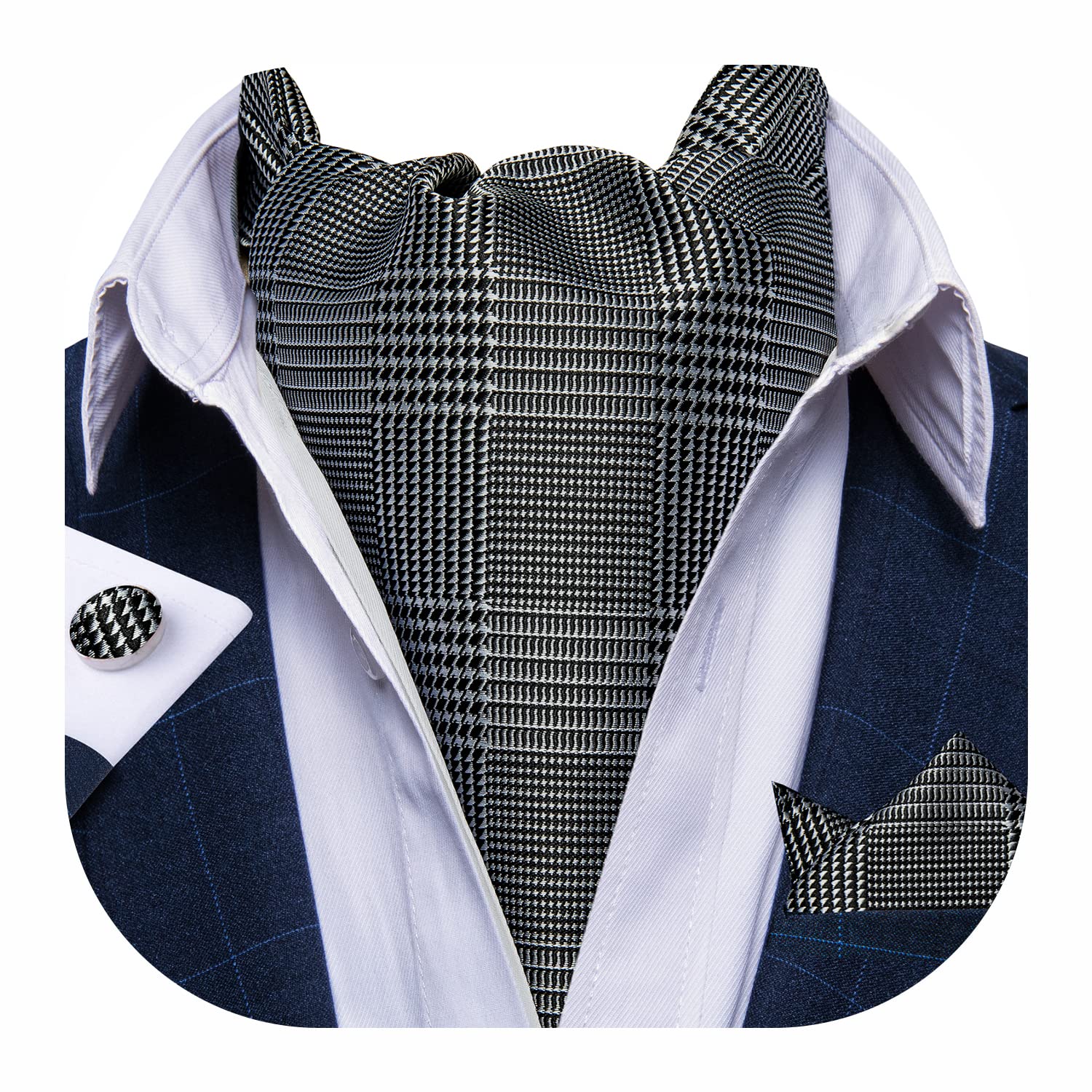 Extra Lange Krawatte Für Große Männer - Seiden Set Mit Einstecktuch & Manschettenknöpfe
