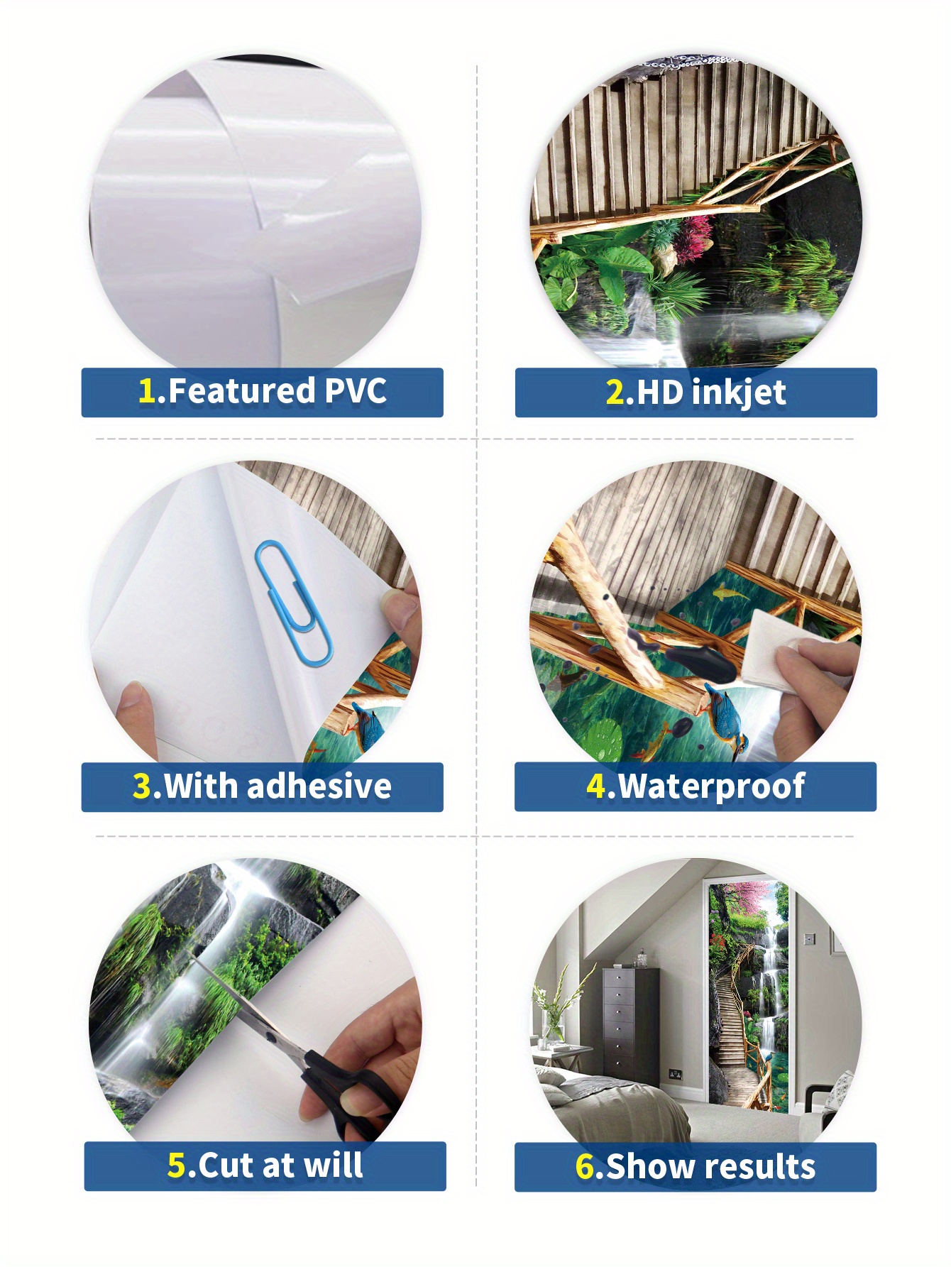 Verwandle deine Wände im Handumdrehen! Diese kreativen 3D-Wandaufkleber bringen Leben in jeden Raum. Einfach anzubringen - einfach auf saubere, glatte Flächen aufkleben und schon wirkt der Raum wie neu. Aus wasserfester PVC-Folie, die umweltfreundlich und langlebig ist. Die bunten Motive sorgen für fröhliche Stimmung im Wohnzimmer, Flur oder sogar im Supermarkt. Besonders praktisch: Luftblasen lassen sich einfach herausdrücken. Perfekt für alle, die ihre vier Wände mal wieder aufpeppen wollen - ohne großen Aufwand und ohne handwerkliches Talent. Das Set enthält drei verschiedene Aufkleber - da ist für jeden Geschmack etwas dabei. Deine Gäste werden staunen!