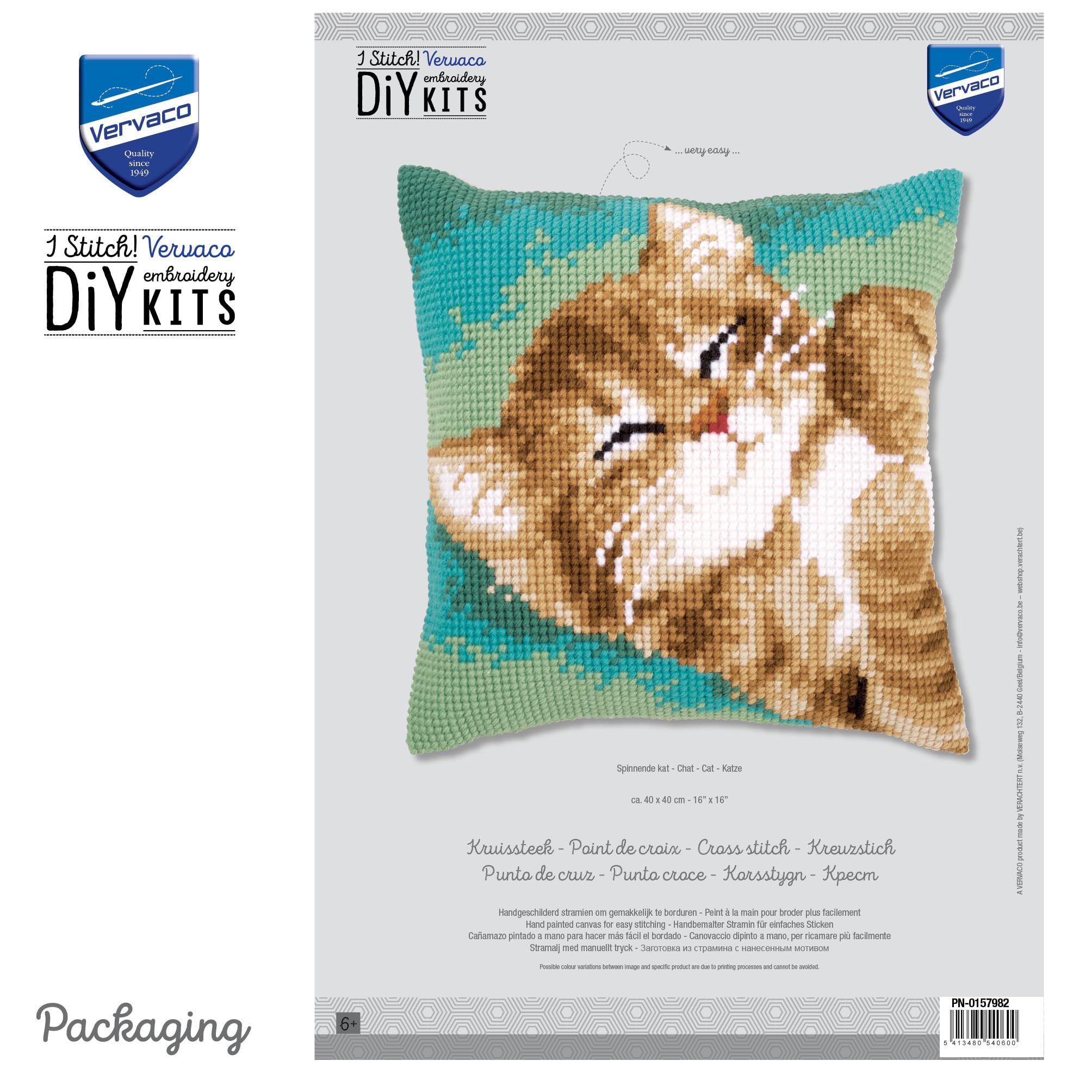 Was für ein süßes Projekt! Dieses Kreuzstich-Kissen mit den verspielten Katzen und Garnknäueln macht richtig Laune aufs Sticken. Alles ist dabei: bunter Baumwollgarn, Sticknadel, Schere, Einfädler und sogar ein Fingerhut. Der 45x45cm große Kissenbezug ist schon mit dem Motiv vorbedruckt - super praktisch für Einsteiger!