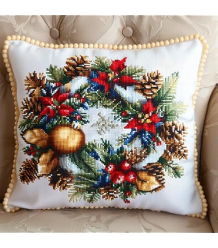Kreuzstich Kissen Set Katze 45x45cm | Vorgedruckt Für Anfänger | DIY Handstickerei