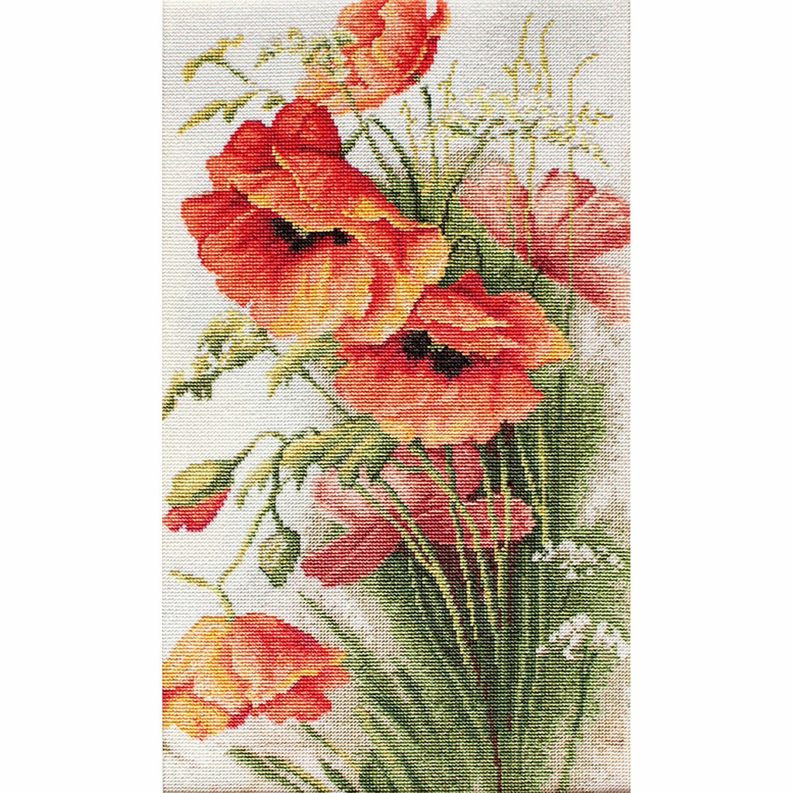 Luca-S Kreuzstich-Set Rote Mohnblumen 20x32,5cm - Komplettset Mit Garn Und Stoff