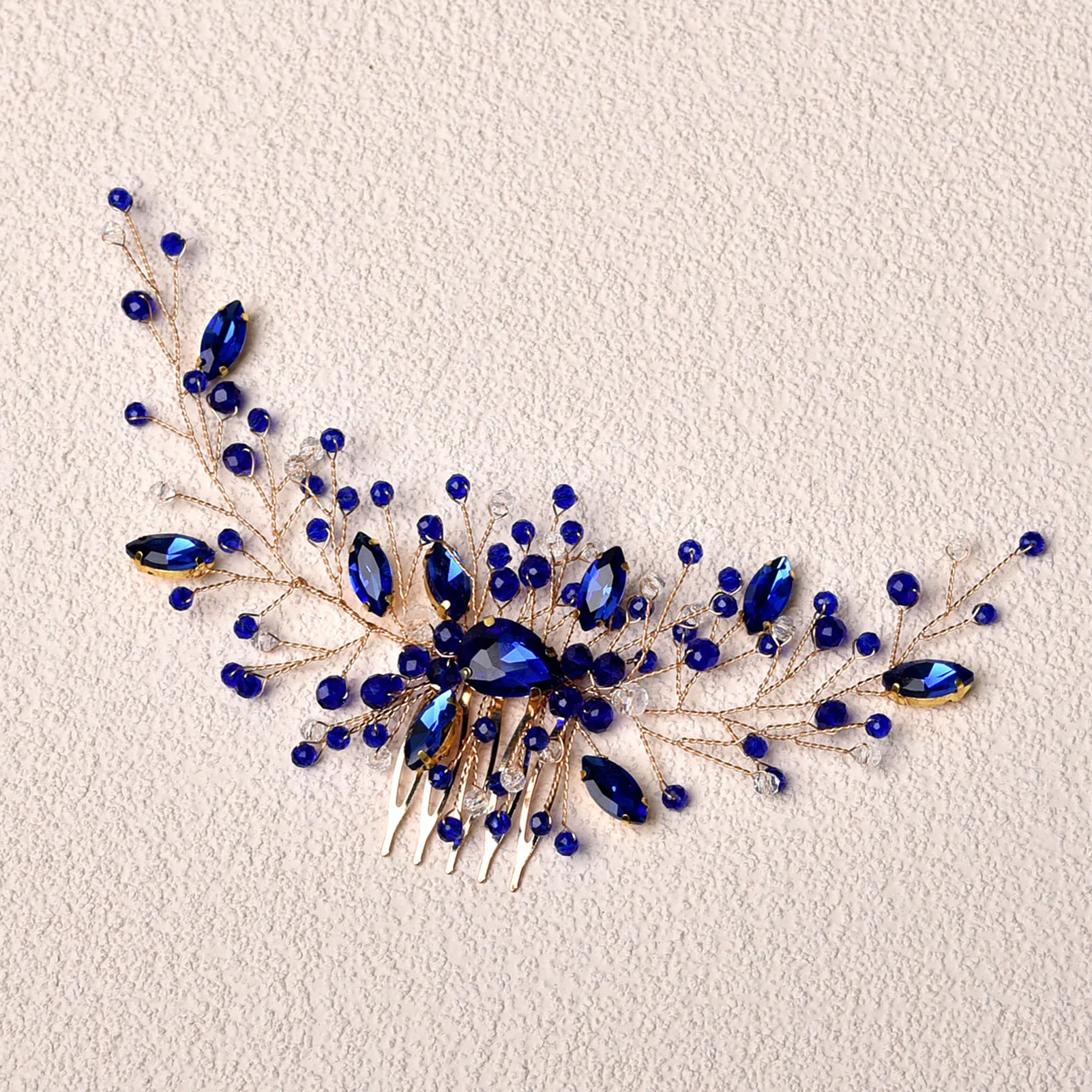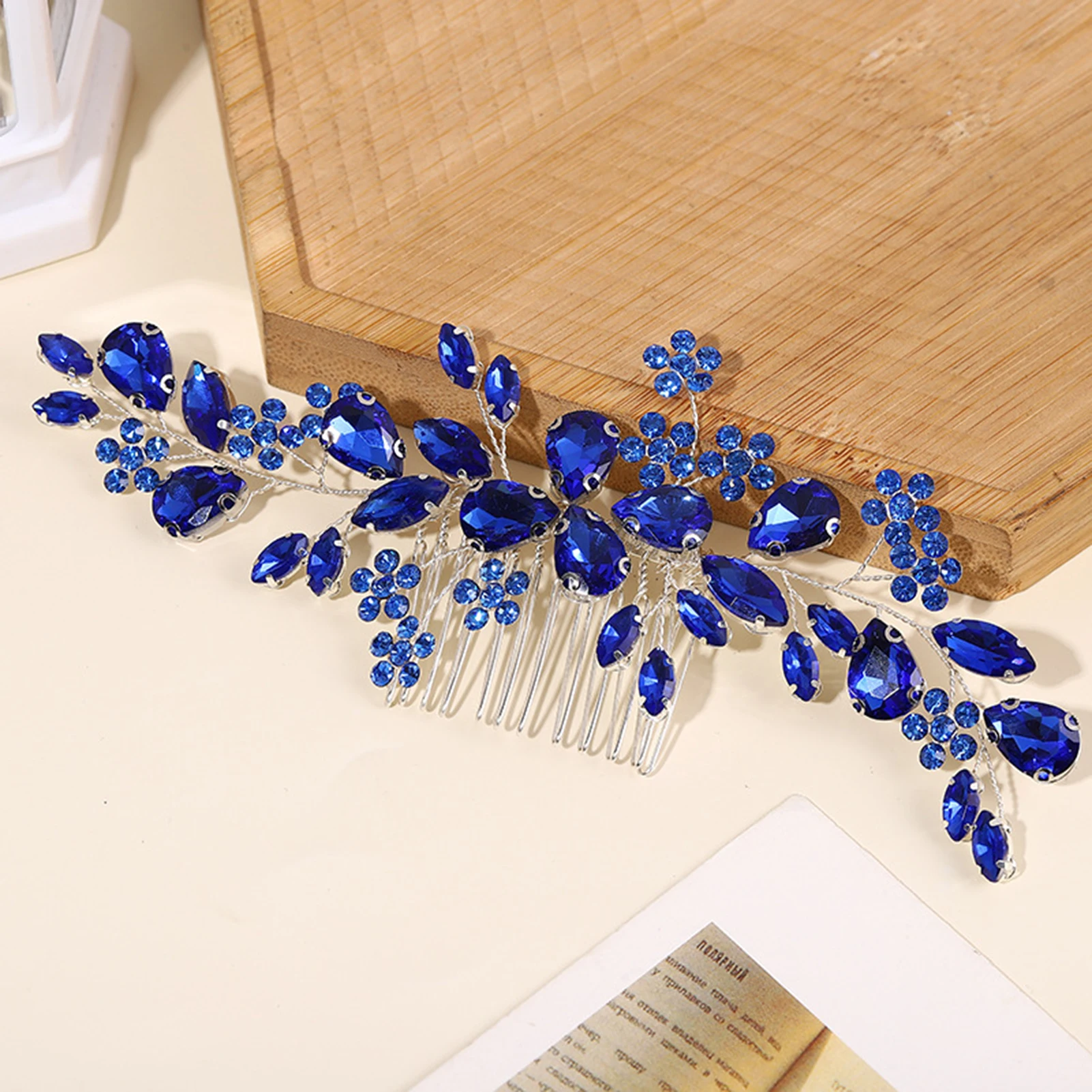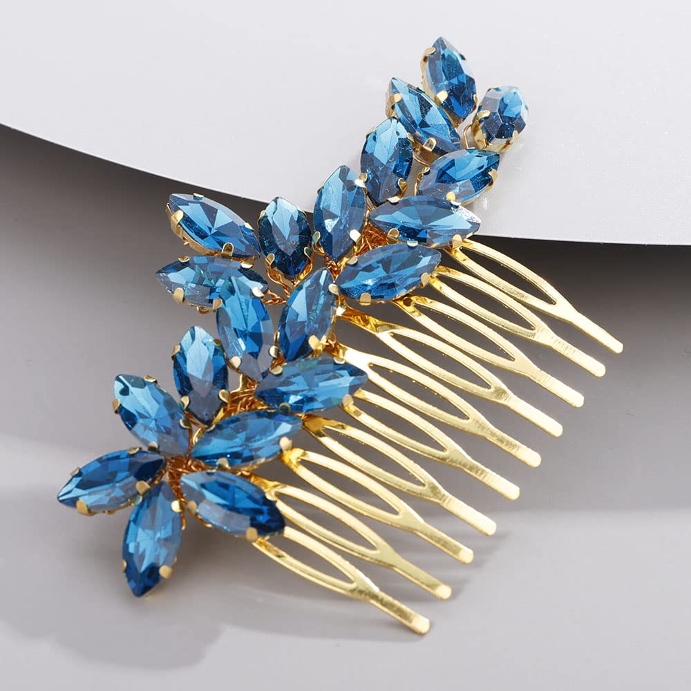 Blauer Strass-Haarkamm - Kristall Kamm Für Braut & Hochzeit (Handgefertigt)
