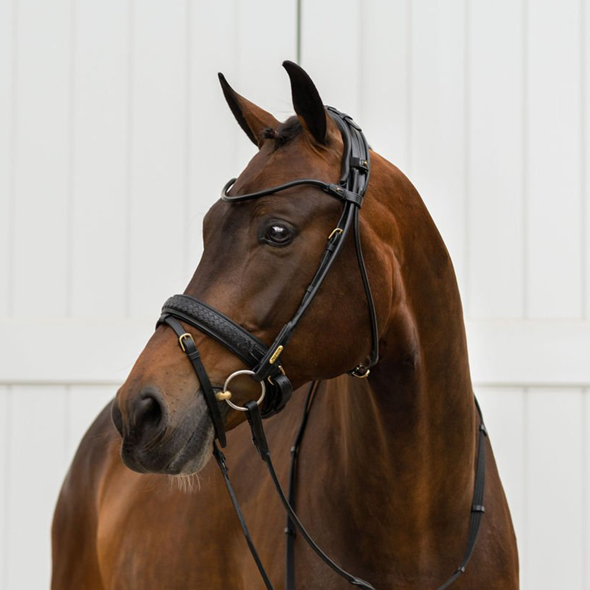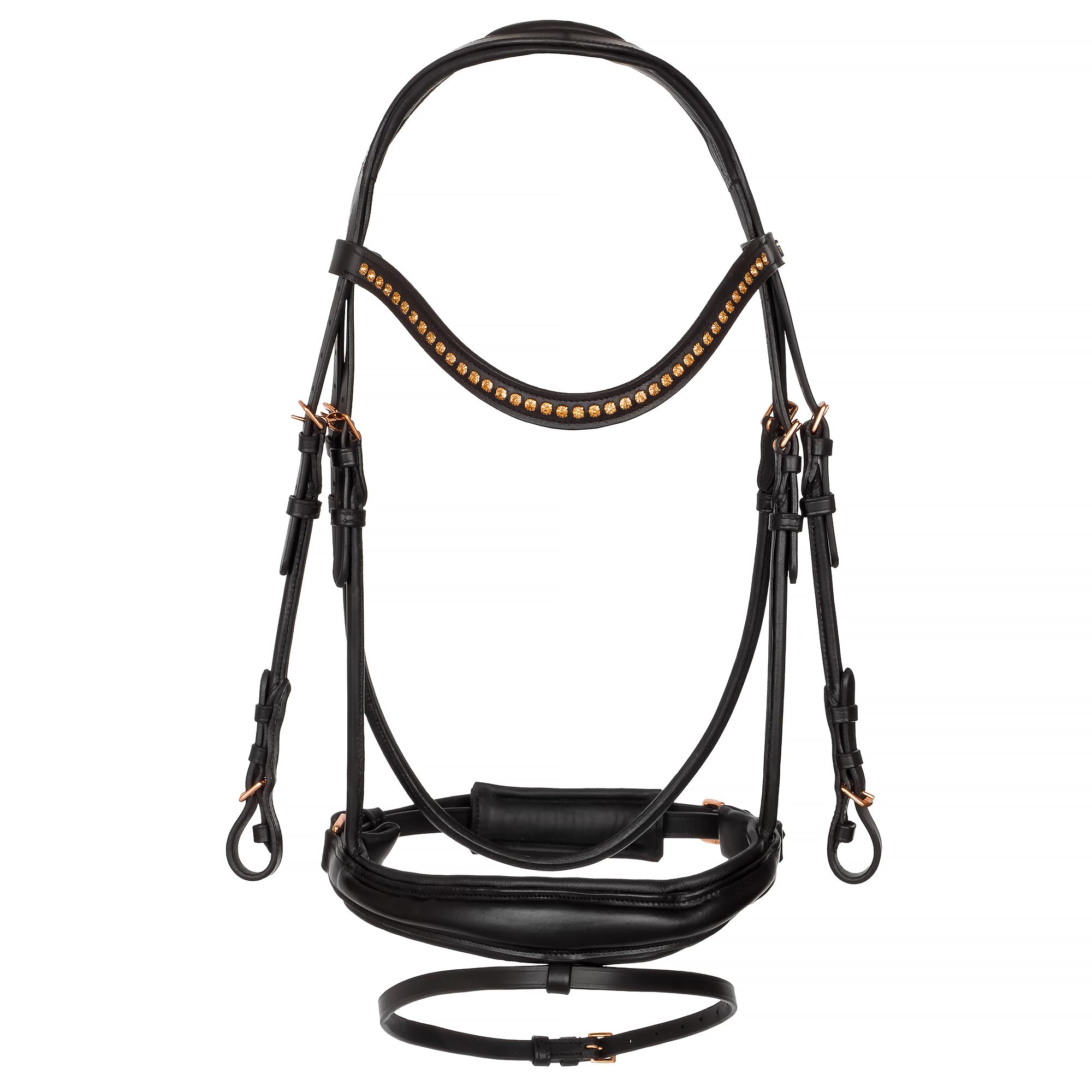 EQUESTRIAN QUEEN Ledertrense Mit Kristallen - Anatomisch Gepolstert, Komplett Mit Zügeln (Schwarz)