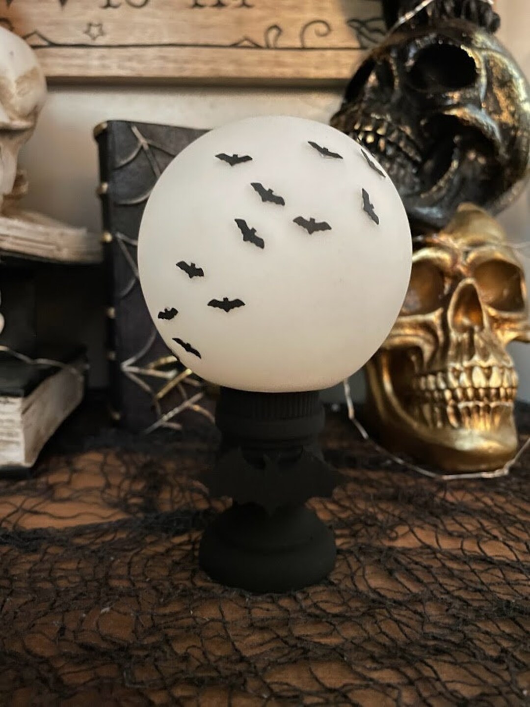 Gruselige Deko für Halloween-Fans! Diese Sensenmann-Statue hält eine Kristallkugel mit wirbelnden blauen Pailletten und schwebenden Fledermäusen. Aus hochwertigem Glas und Harz mit liebevollen Details. Erzeugt eine mystische Atmosphäre wenn beleuchtet. Perfekt für Bücherregale, Schreibtische oder als Teil von Halloween-Arrangements. Auch als ganzjährige Gothic-Deko geeignet. Tolles Geschenk für Horror-Fans. Verleiht jedem Raum eine geheimnisvolle Note!