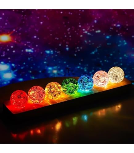 Verwandle dein Zimmer in eine magische Galaxie! Dieses wunderschöne Nachtlicht zeigt 7 verschiedene Planeten in kristallklaren 40mm Kugeln - Erde, Sonnensystem, Mond, Milchstraße, Saturn und Jupiter. Mit 3D-Gravurtechnik sehen die Planeten täuschend echt aus und leuchten in verschiedenen Farben. Der stabile Holzsockel mit 7 Löchern und USB-Anschluss macht die Bedienung super einfach. Einfach anschließen und schon erleuchten die Planeten und zaubern eine traumhafte Atmosphäre. Perfekt fürs Schlafzimmer, Wohnzimmer oder als romantische Deko. Ein ideales Geschenk für Astronomie-Fans, zu Valentinstag, Weihnachten oder einfach so. Die Kristallkugeln sind handgefertigt und frei von Blasen - absolute Premium-Qualität!