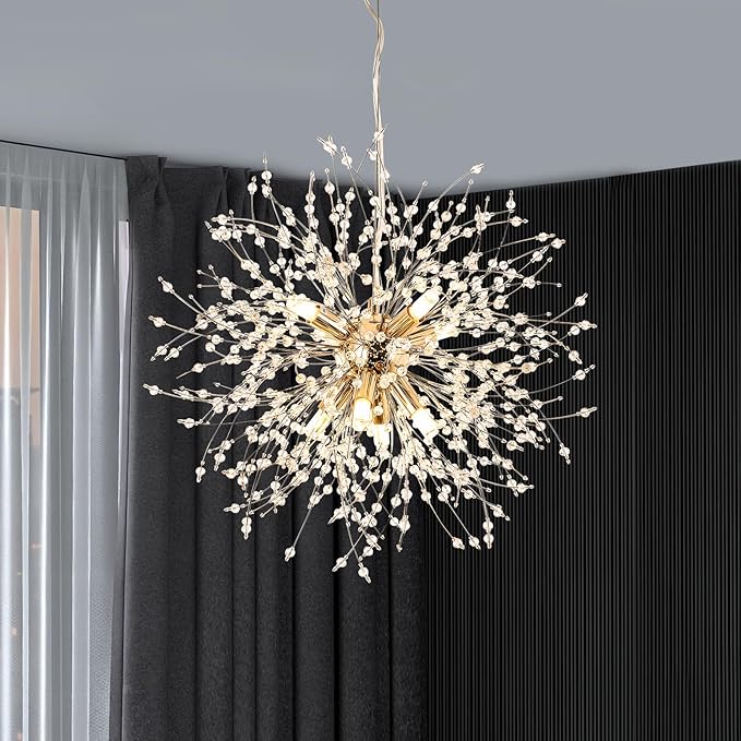 Dieser Sputnik-Kronleuchter bringt retro-futuristischen Flair in deine vier Wände! Mit 18 Armen im ikonischen Sputnik-Design wird diese Deckenleuchte zum absoluten Hingucker in jedem Raum. Hergestellt aus robustem Eisen mit galvanisierter Oberfläche ist der Kronleuchter rostfrei, korrosionsbeständig und extrem langlebig. Die Standard E27-Fassungen passen zu LED-Birnen, Edison-Lampen, Glühbirnen oder Energiesparlampen - du hast die freie Wahl (Leuchtmittel sind nicht im Lieferumfang enthalten). Die Montage ist super einfach: Alle Zweige sind bereits vorverdrahtet, du musst sie nur in die zentrale Metallplatte schrauben und an der Decke befestigen. Aber Achtung: Für die Installation empfehlen wir einen professionellen Elektriker und natürlich vorher die Stromzufuhr trennen! Perfekt für Wohnzimmer, Esszimmer, Schlafzimmer, Flur oder auch kommerzielle Bereiche wie Bars, Cafés und Hotels. Der industrielle Vintage-Look kombiniert mit moderner Funktionalität - dieser Kronleuchter verleiht deinem Zuhause sofort eine ganz besondere Atmosphäre. Schaff dir mit dieser außergewöhnlichen Leuchte deinen persönlichen Wohlfühlraum!