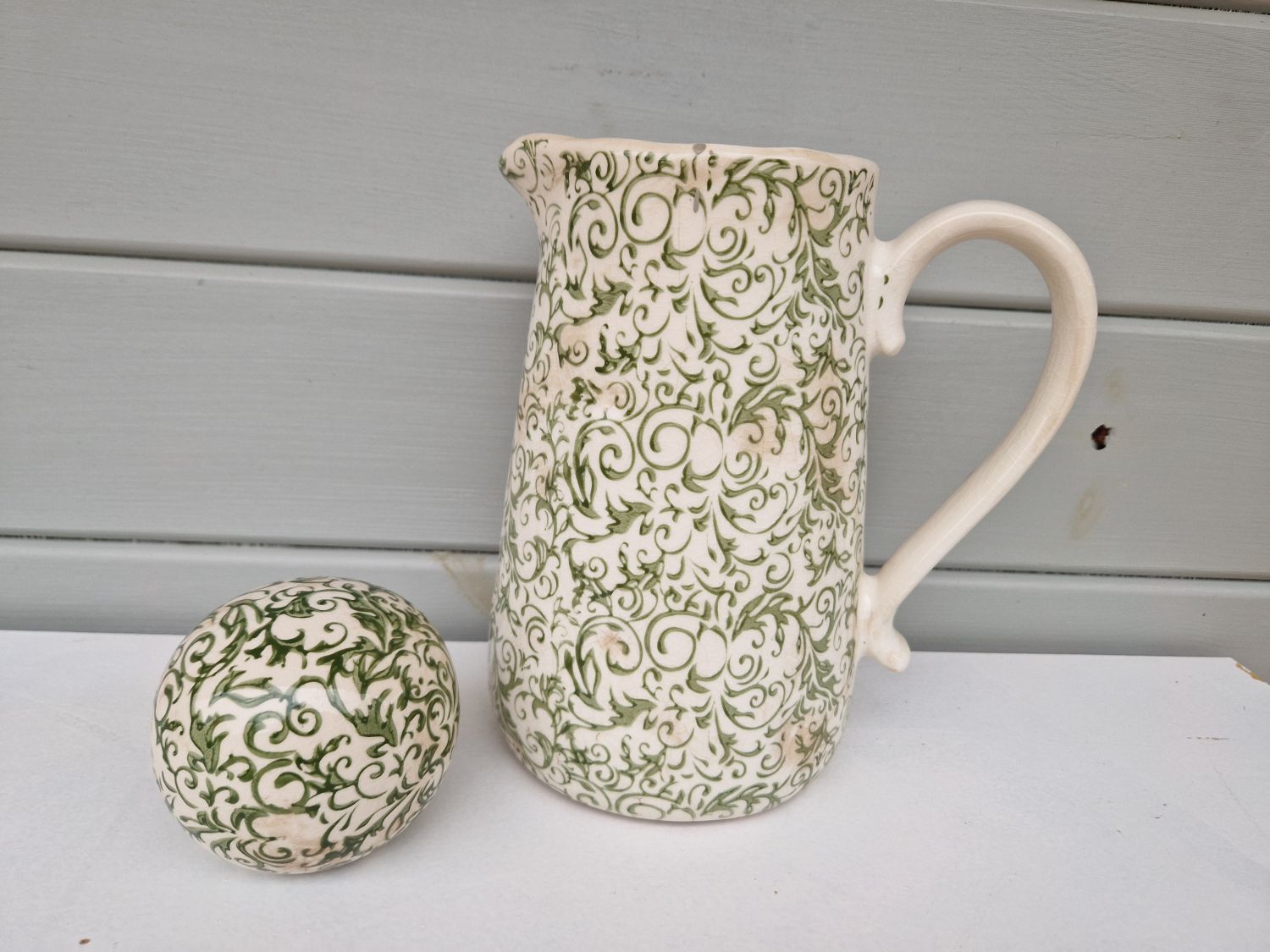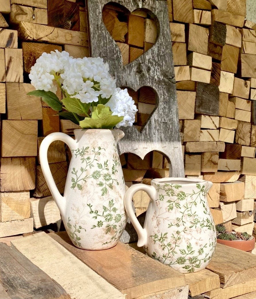 Landhaus Krug Grün Mit Efeuranke - Steingut Shabby Style 20x15x23cm