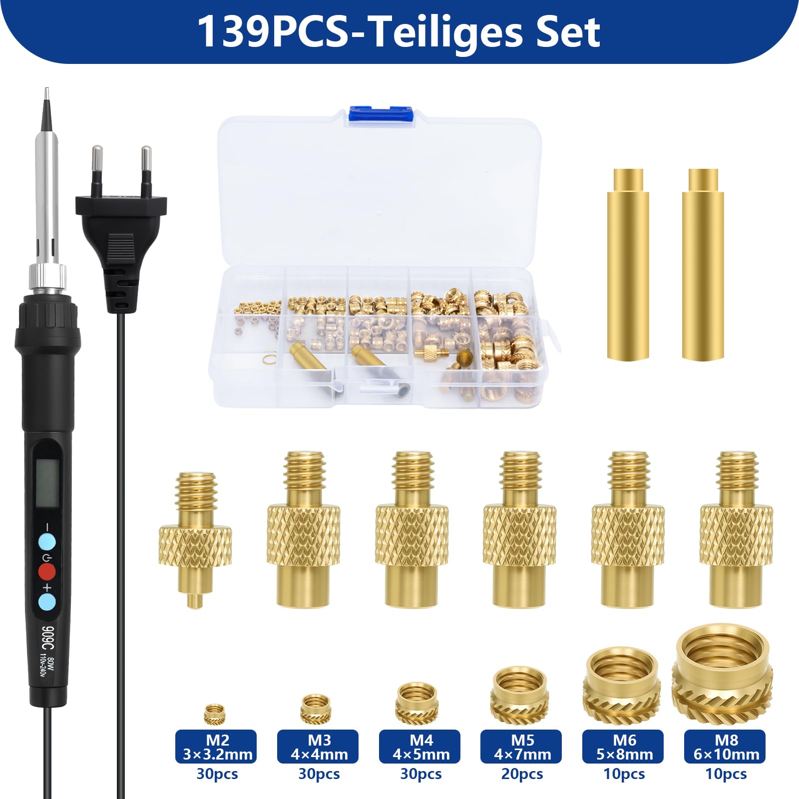 Kssvzz Lötkolben Set 80W - Mit 139 Gewindeeinsätzen & 8 Lötspitzen