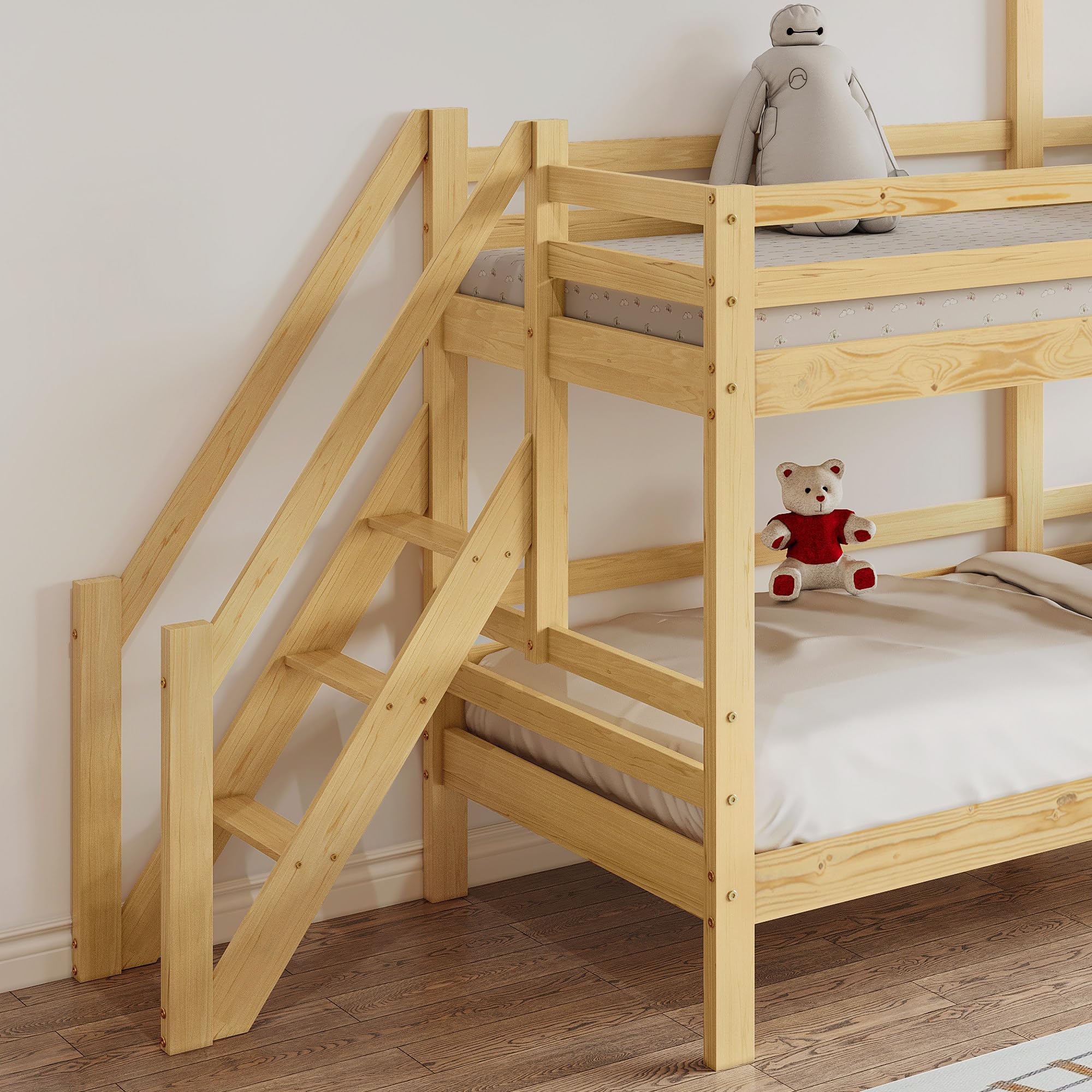 Das Traum-Bett für jedes Kinderzimmer! Dieses kubeier Etagenbett hat oben eine 90x200cm Koje fürs Kind und unten 120x200cm für Mama oder Geschwister. Aus massivem Kiefernholz und MDF, super stabil und trägt bis zu 100 kg. Die coole Rutsche macht das Aufstehen zum Spaß, und das nature Fenster verwandelt das Bett in eine Spielburg. 2 praktische Schubladen unten bieten Stauraum für Spielzeug oder Bettwäsche. Die 4-stufige Kipptreppe ist sicher und rutschfest. Mit 250x148x193 cm ist es ein echter Hingucker! Lattenroste sind dabei, Matratzen nicht. Selbstmontage nötig, kommt in 3 Paketen (können unterschiedlich ankommen). Perfekt für kleine Räume oder Geschwisterzimmer - platzsparend und voller Spielmöglichkeiten! Dein Kind wird sein neues Reich lieben! Einfach bestellen und Kinderträume wahr werden lassen!