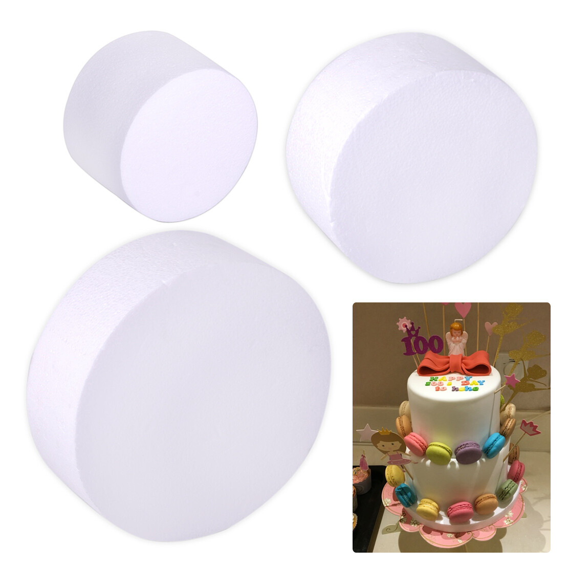 Hey du kreativer Bäcker! Diese beiden Styropor-Kuchenattrappen sind perfekt, um deine Tortendekorations-Skills zu verbessern. Mit den Maßen 10 cm und 15 cm Durchmesser hast du zwei realistische Größen zum Üben. Aus hochwertigem weißem Schaumstoff gefertigt, sind sie ideal für Fondant, Zuckerpaste, Buttercreme und Modellierpaste. \\n\\nEgal ob du ein professioneller Konditor bist oder einfach nur Hobby-Bäcker - mit diesen Dummys kannst du riskantlos die tollsten Hochzeitstorten, Geburtstagstorten oder Festtagstorten entwerfen. Du kannst sie schleifen, bemalen, bekleben und immer wieder verwenden. \\n\\nSuper praktisch: Die Größe entspricht echten Torten, sodass du ein perfektes Gefühl für Proportionen bekommst. Perfekt für die Vorbereitung auf besondere Anlässe wie Hochzeiten, Jubiläen oder Geburtstage. \\n\\nKeine Verschwendung mehr von teuren Zutaten beim Üben! Einfach dekorieren, fotografieren für dein Portfolio, und dann ab damit zur nächsten Kreation. Absolute Must-haves für jeden, der serious über Tortendekoration nachdenkt!