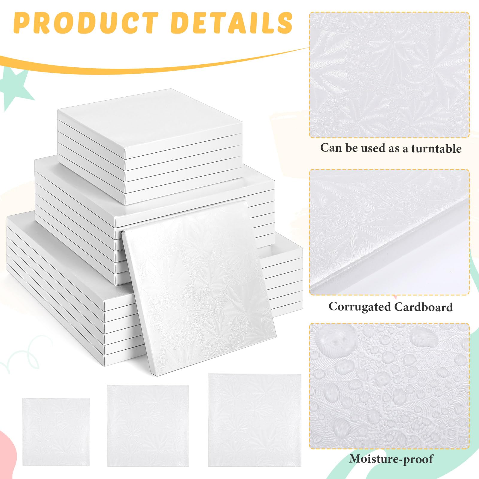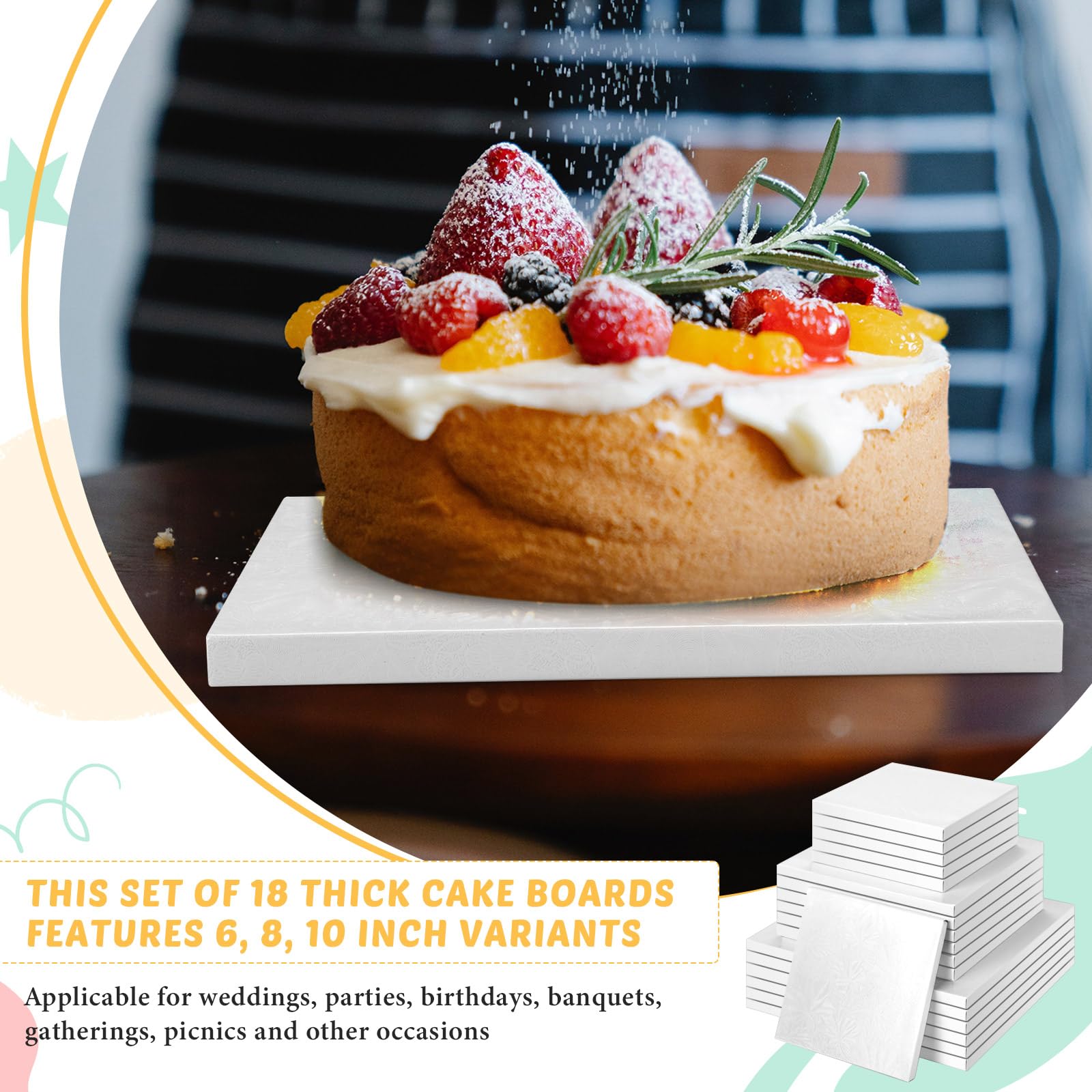 4-teiliges Kuchenplatten Set - 15/20/25/30cm Mit Holzstäbchen Für Torten